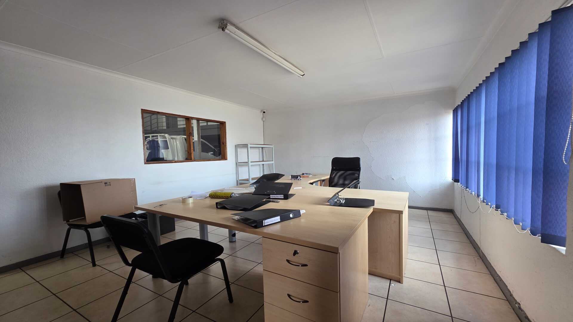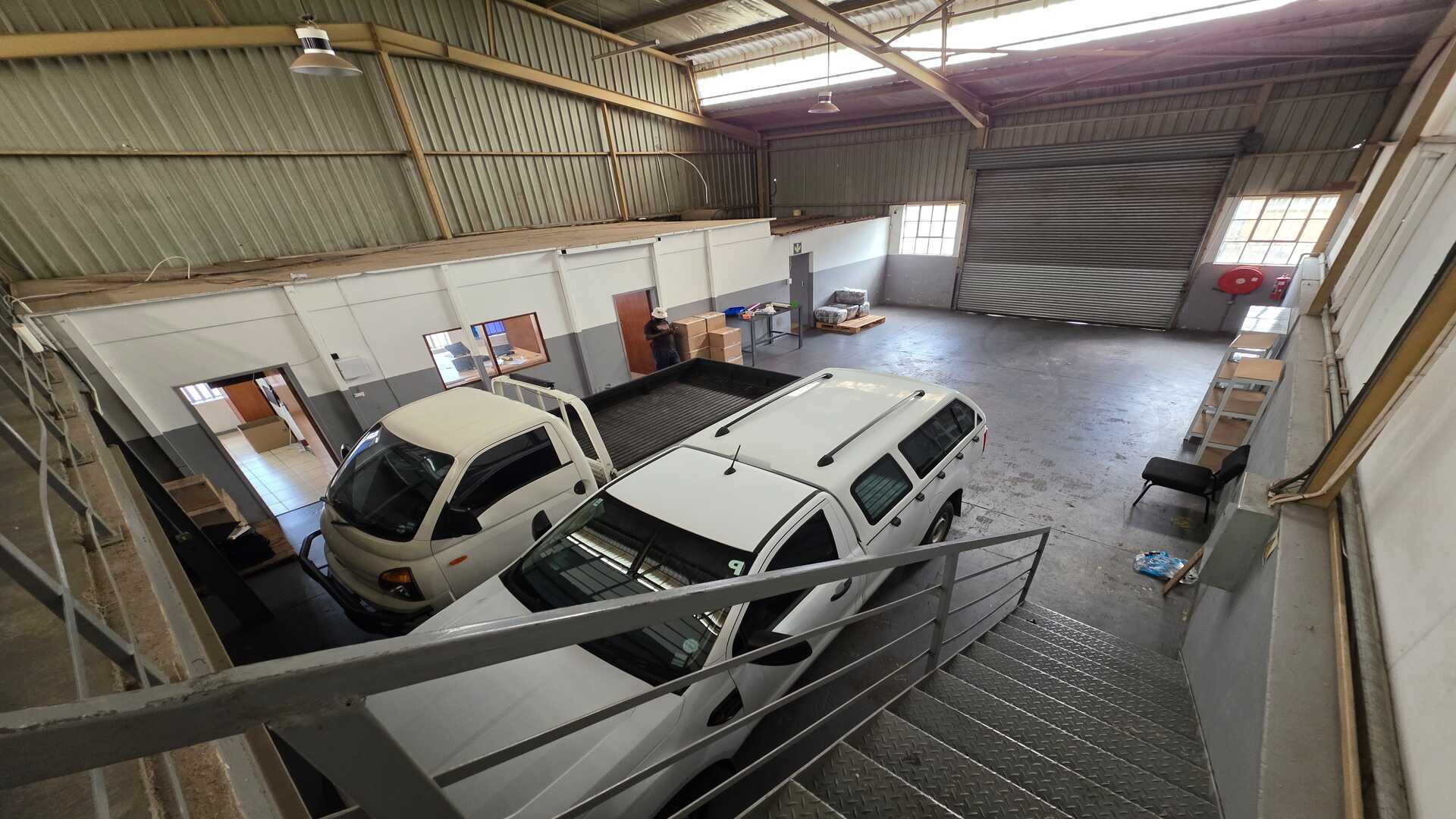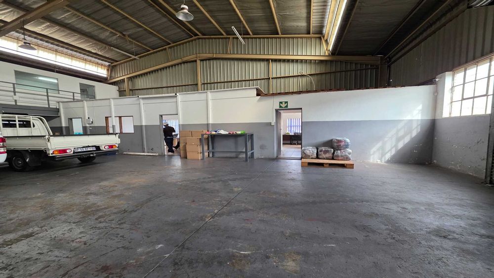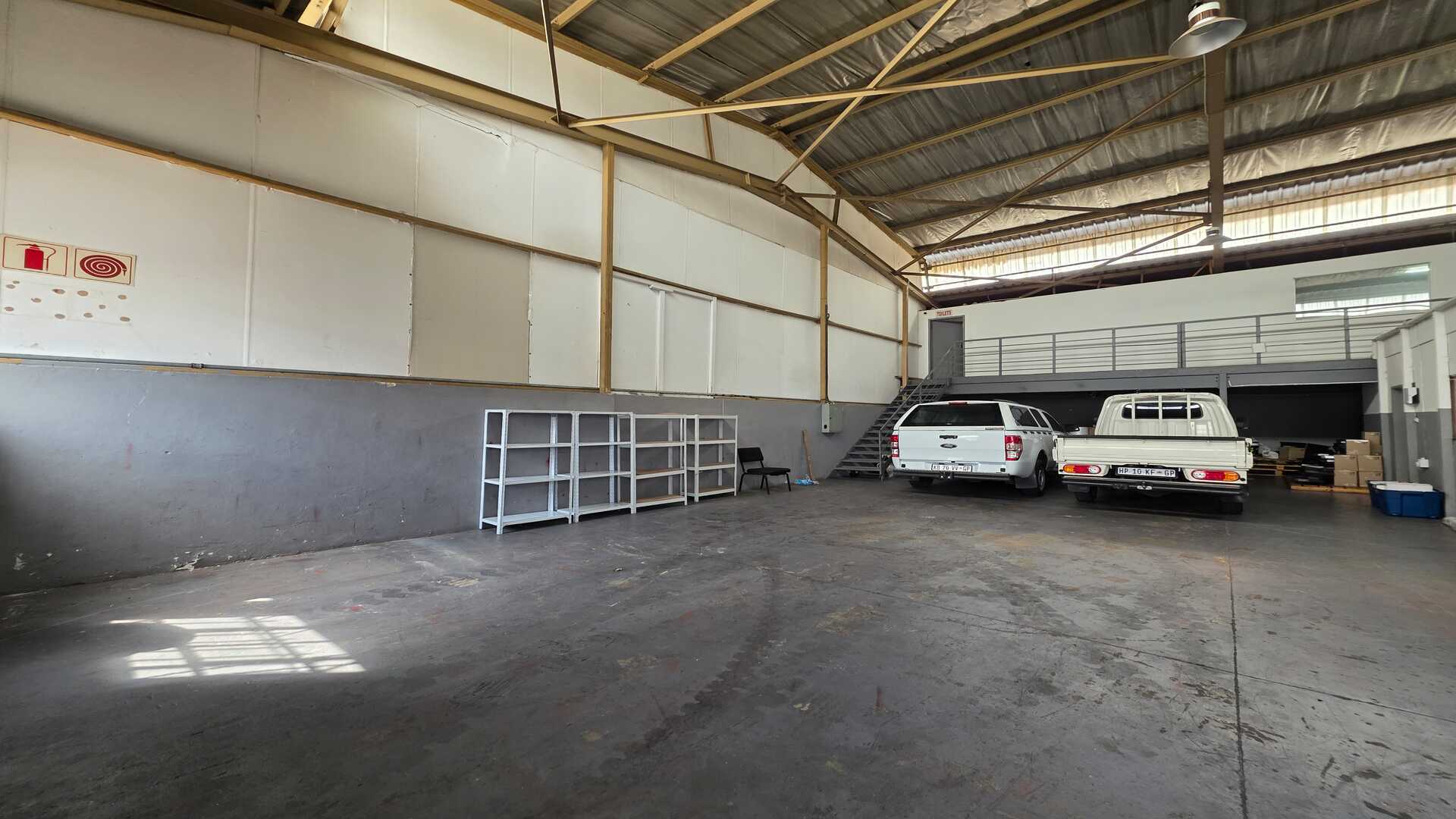 Unit size of 250sqm under roof including office space. 1 x large roller shutter door. 3phase power 100amps. Good height to eaves for racking or stacking. The warehouse floors are in a good condition and the unit will suit most industries, like logistics, light manufacturing and storage. Reception area with ablution on the ground floor, first floor has a large open planned office with ablution. Price excludes Fixed Monthly Charges and Ops costs. The N12, R21 and R24 freeways are easily accessible with O.R. Tambo International Airport being within 5km (7mins) distance. AVAILABLE IMMEDIATELY