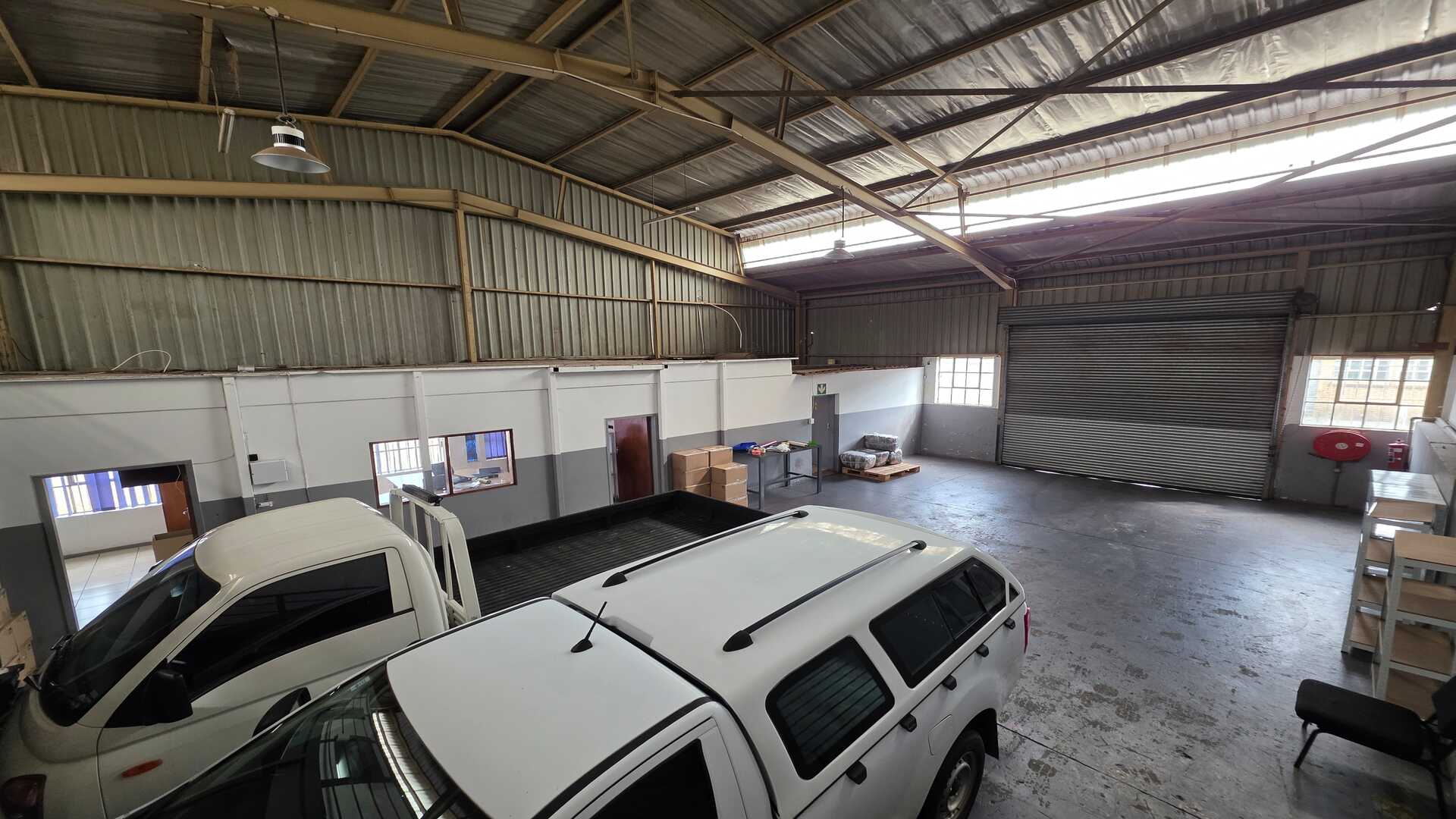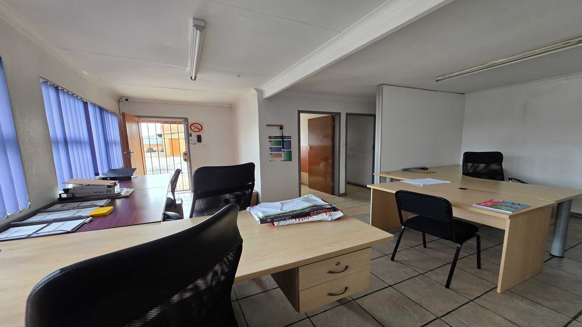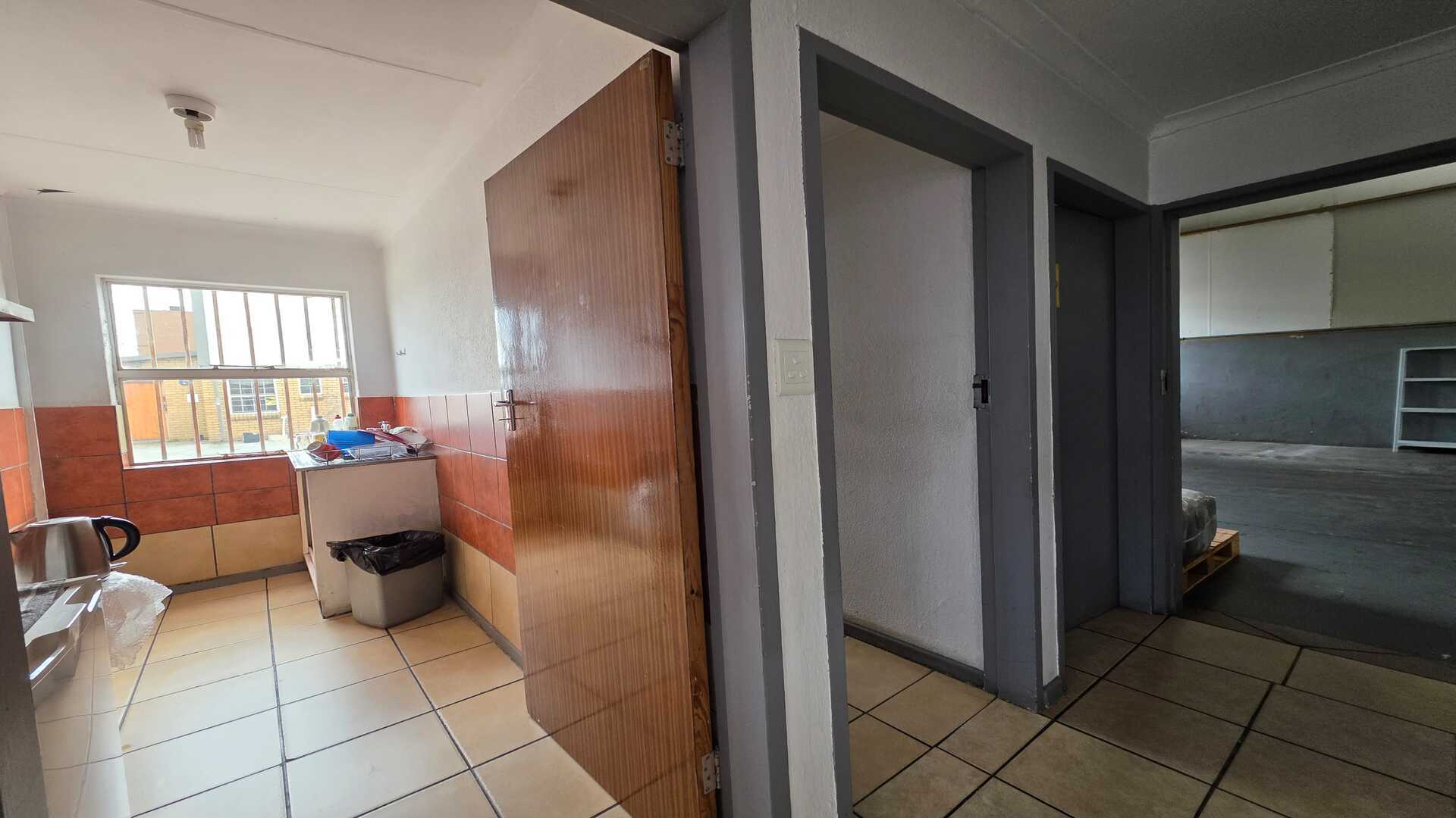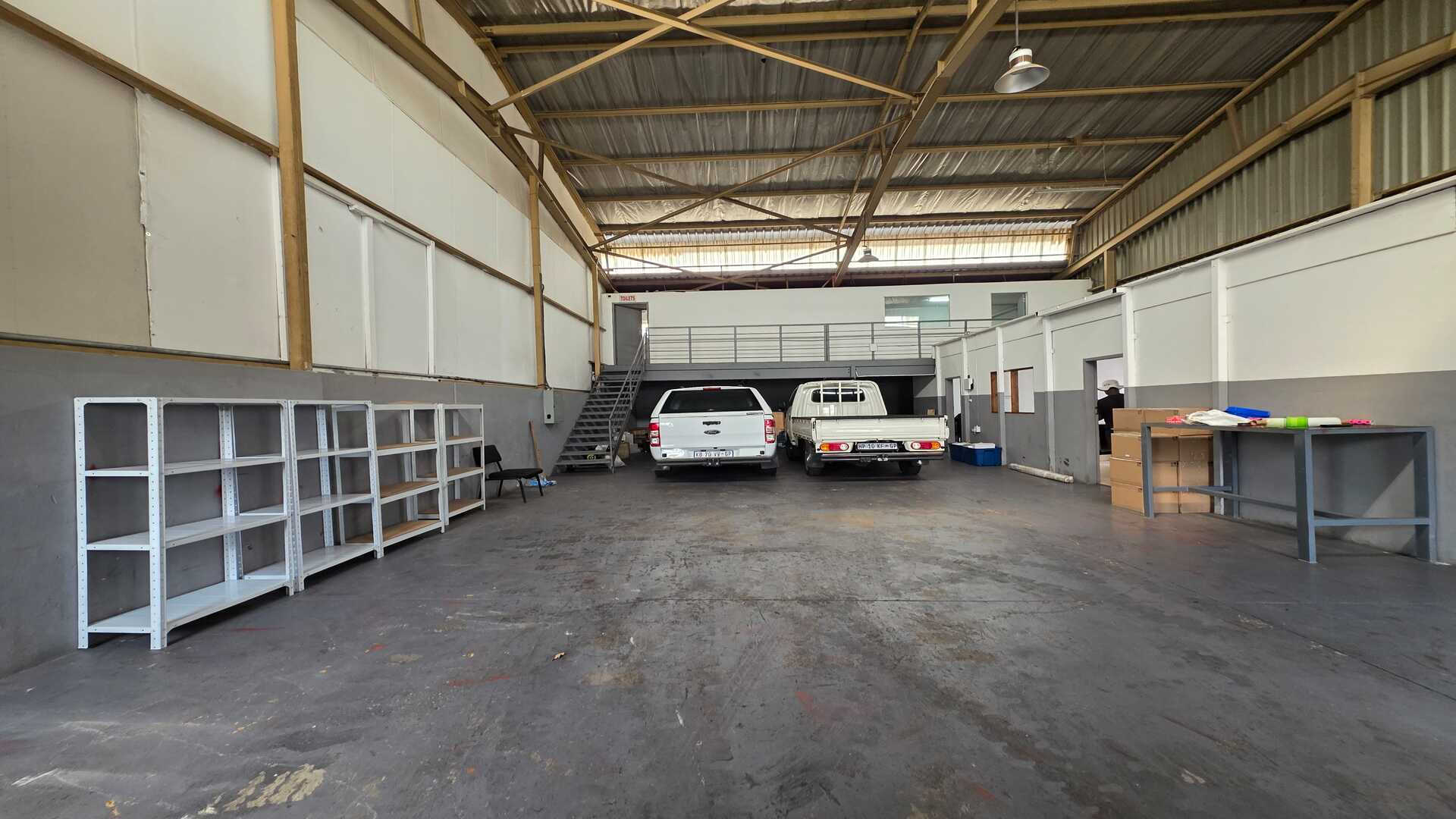 Unit size of 250sqm under roof including office space. 1 x large roller shutter door. 3phase power 100amps. Good height to eaves for racking or stacking. The warehouse floors are in a good condition and the unit will suit most industries, like logistics, light manufacturing and storage. Reception area with ablution on the ground floor, first floor has a large open planned office with ablution. Price excludes Fixed Monthly Charges and Ops costs. The N12, R21 and R24 freeways are easily accessible with O.R. Tambo International Airport being within 5km (7mins) distance. AVAILABLE IMMEDIATELY