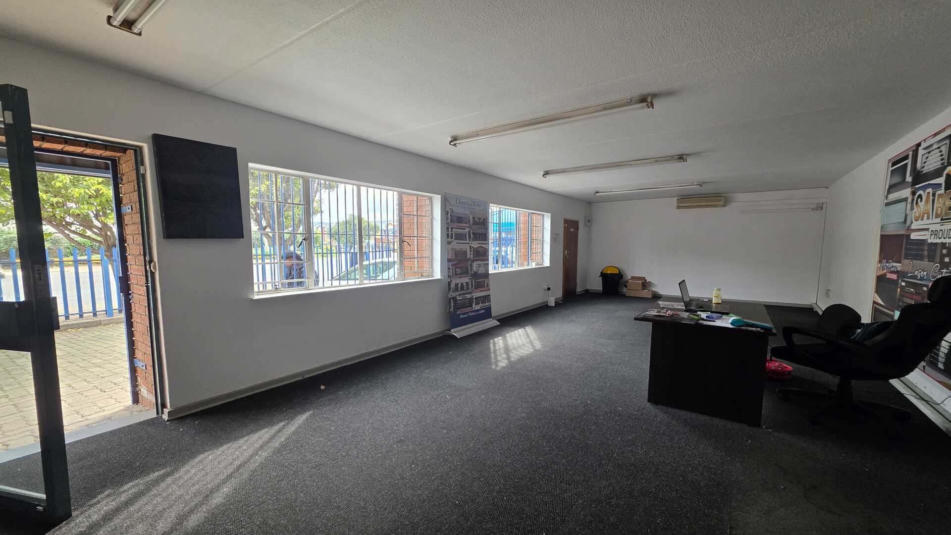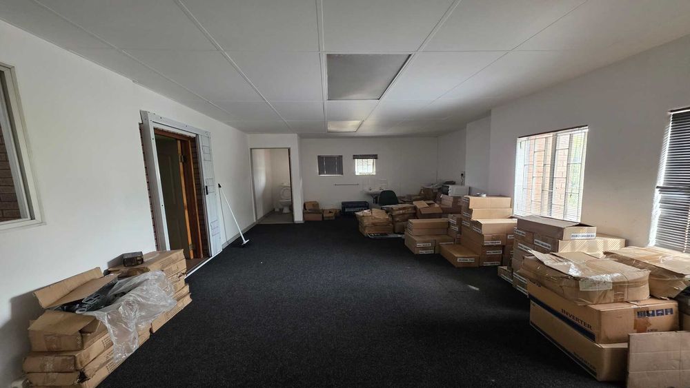 Secure 321sqm warehouse/factory TO LET in Jetpark within an Industrial Park. 1 x large roller shutter door for access. 3phase power 100amps (unfortunately cannot be upgraded). Good height to eaves for racking or stacking. Access controlled gates. Great exposure from main road with plenty of signage opportunities. Office space comprises of reception area, multiple offices, kitchen and office ablutions. Staff kitchen and ablutions are situated in the factory area. Rental Price excludes Fixed Monthly Charges and Ops costs. The N12, R21 and R24 freeways are easily accessible with O.R. Tambo International Airport being within 5km (7mins) distance. AVAILABLE 01 June 2026