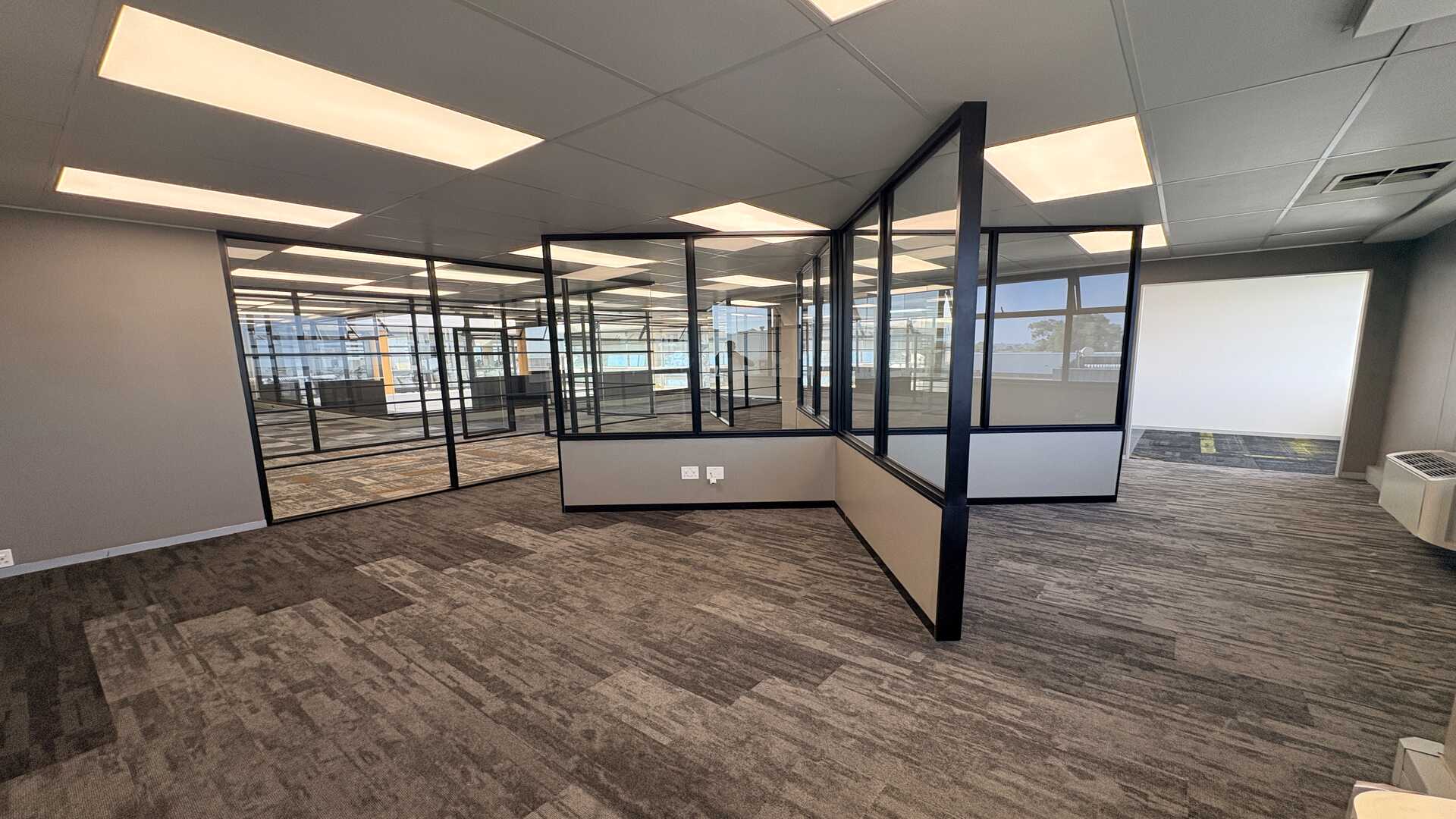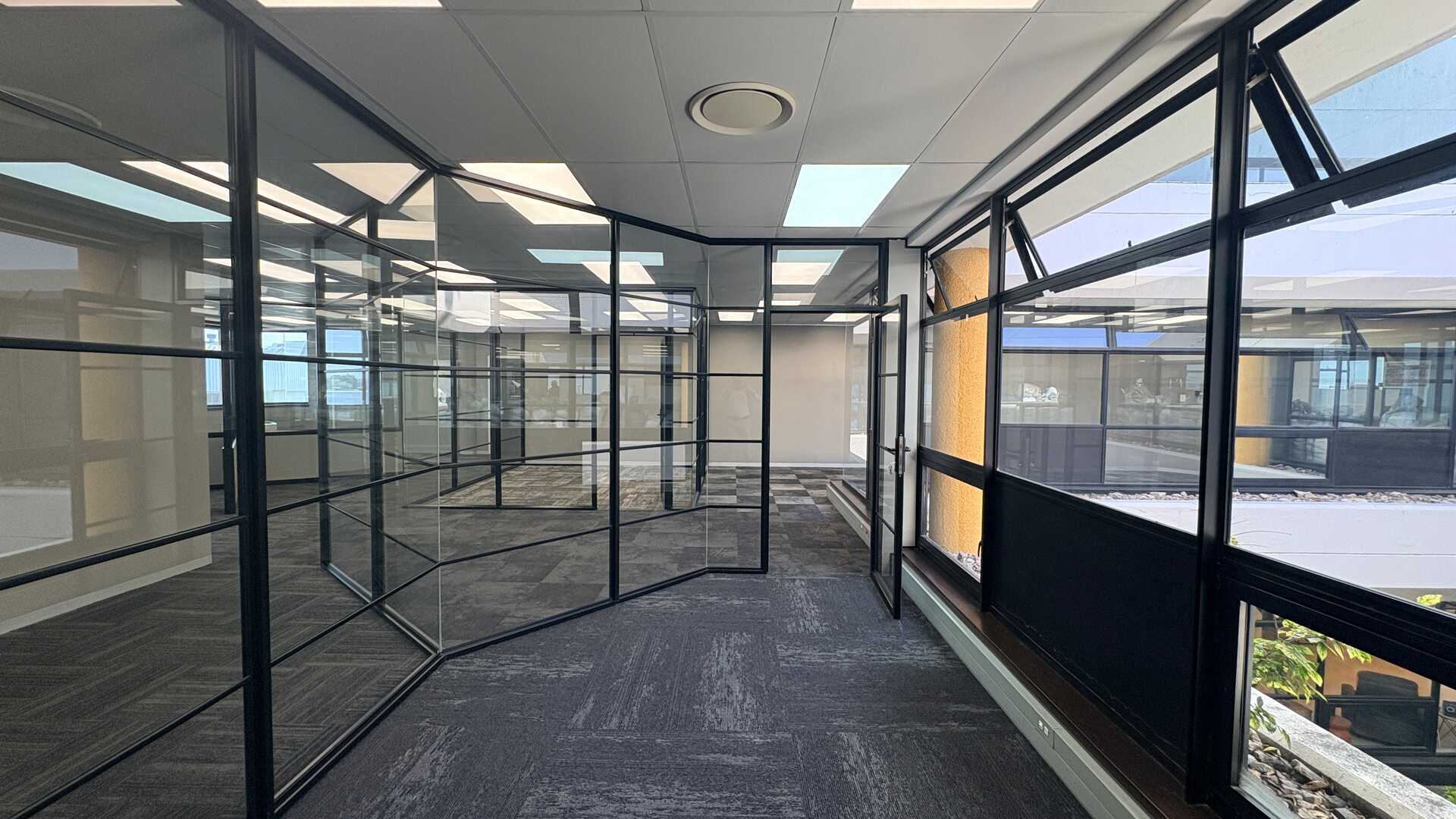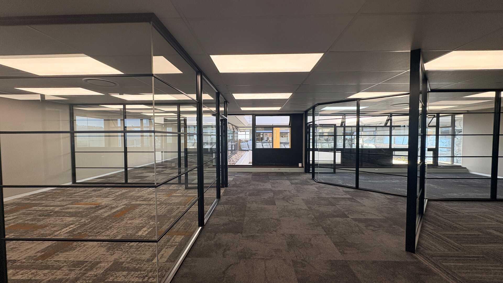Open-plan layout with modern glass partitioning