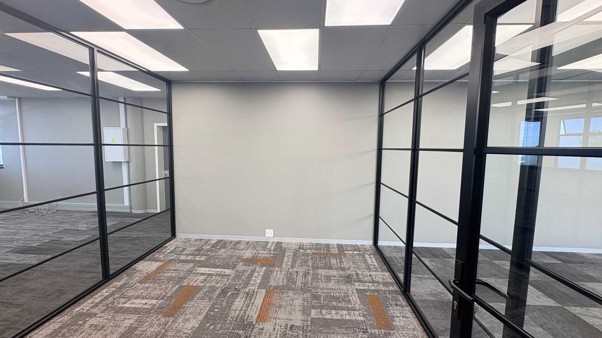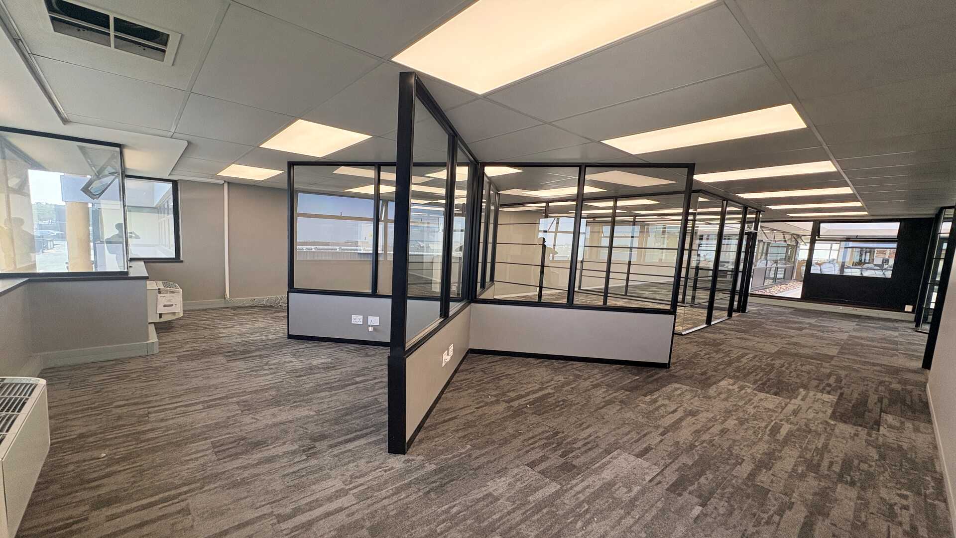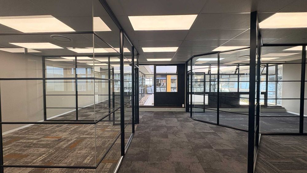 Open-plan layout with modern glass partitioning