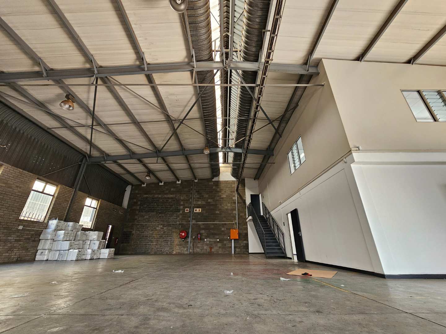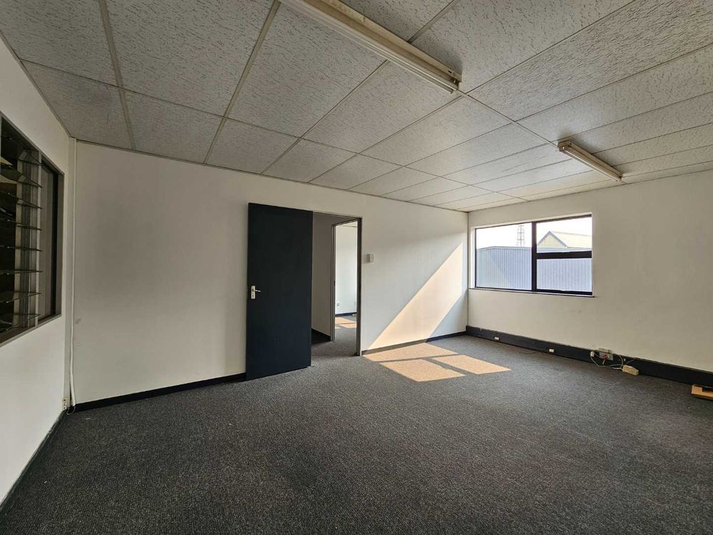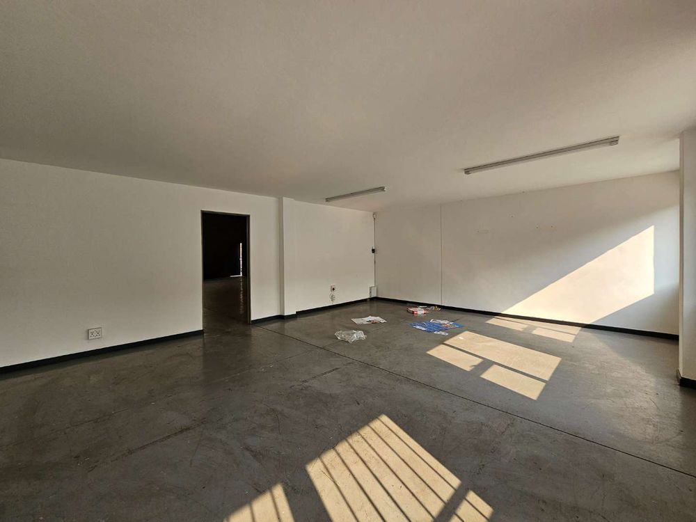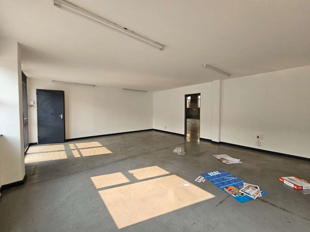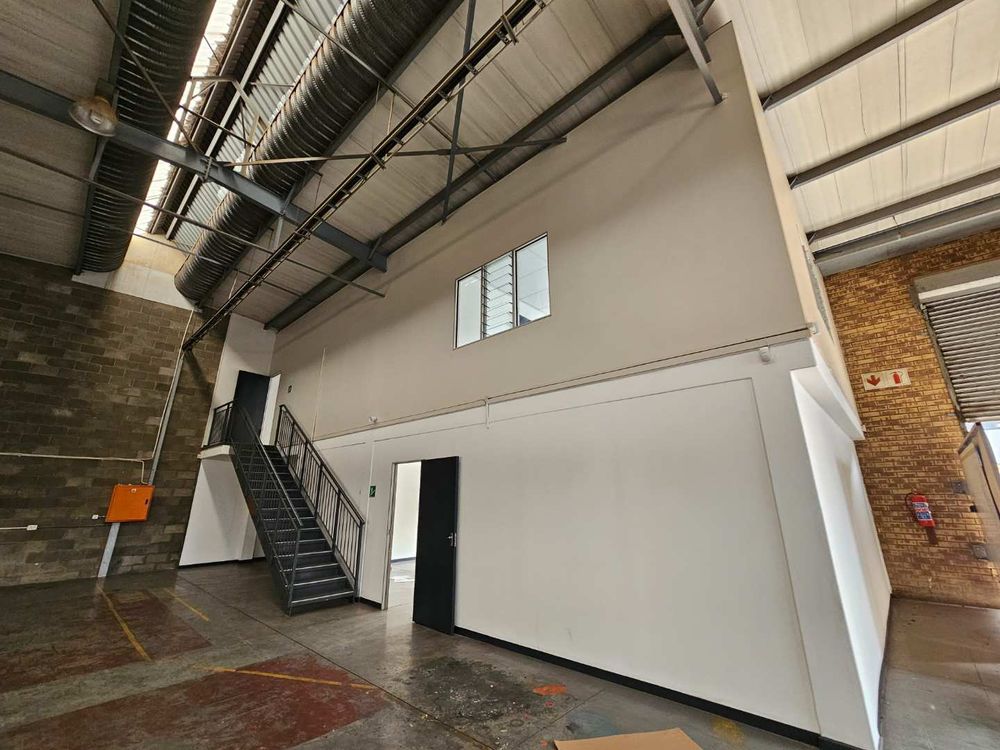 Unit 1 of Citrus Park offers this well maintained 387m2 warehouse to rent in Laser Park, the heart of the Roodepoort industrial node. The unit comes complete with a neat, tiled, welcoming reception area, giving access to the naturally lit warehouse component, offering excellent height to the eaves and a 4m high roller shutter door. The warhouse provides 63 Aps 3 phase electrical power supply with a double storey office component, complete with it's own kitchenette and ablution facilities.