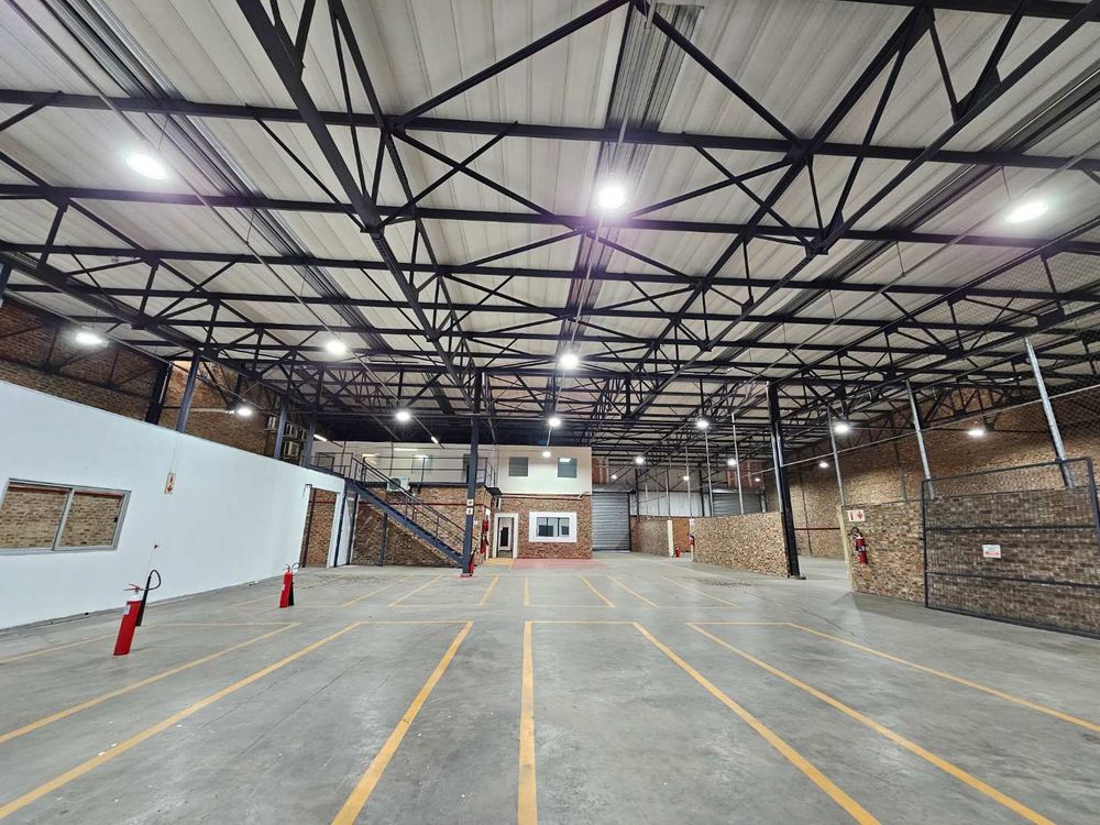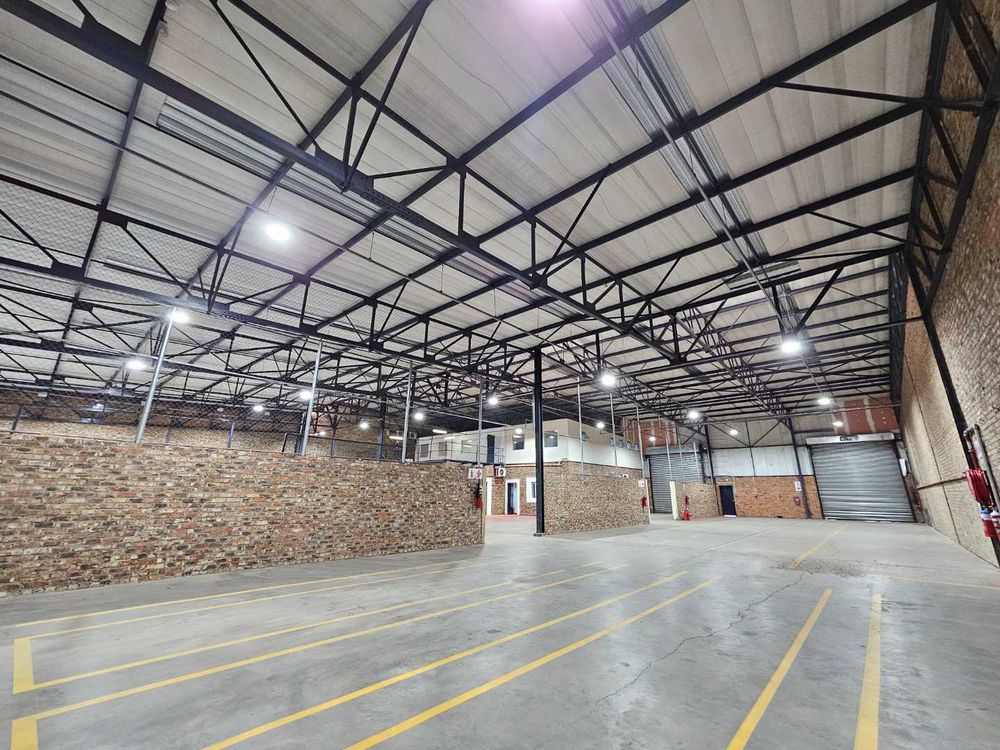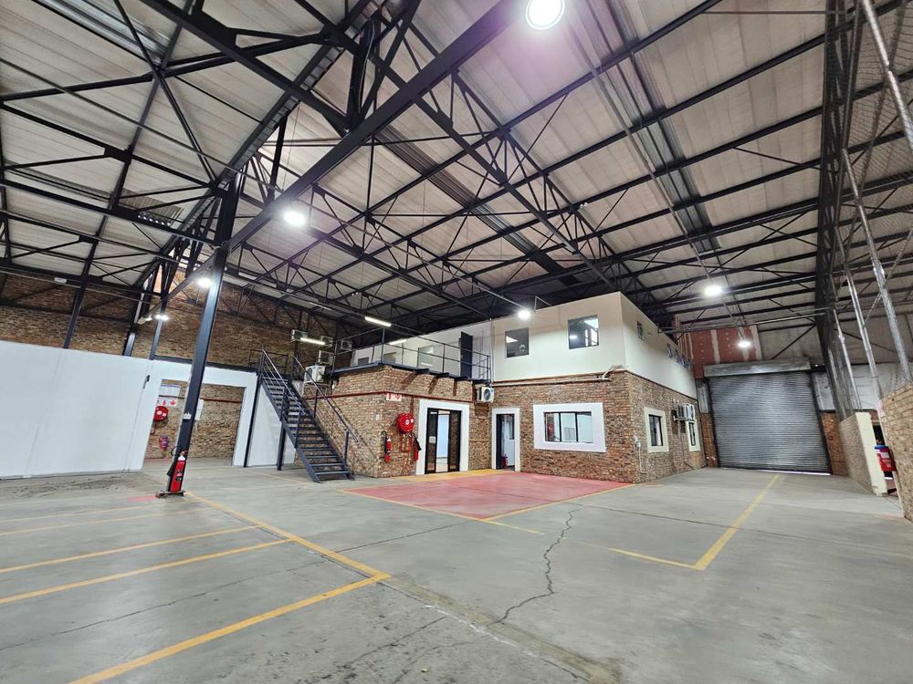 Unit B3 within Kimbuilt Industrial Park offers this spacious and well maintained 1513m2 warehouse to let in Laser Park, Randburg that provides anexcellent modern finish to it's interior and exterior. The unit on offer features a large welcoming reception area giving access to a selection of smaller closed, private offices, spread over 2 storeys. The warehouse can be accessed via 2X 4m high roller shutter doors. The warehouse and office components has their own private kitchenettes and ablution facilities.
