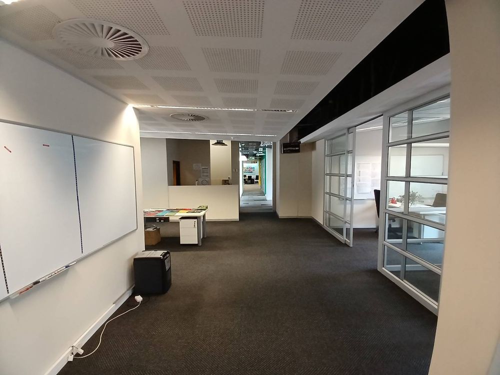 One of the standout features of this office is its direct access to a serene garden courtyard, offering a refreshing outdoor retreat for employees and clients alike. The ample natural light streaming into the space enhances productivity, while the sleek finishes reflect the high standards synonymous with Melrose Arch. This office is ideal for businesses seeking a premium setting in a vibrant and secure precinct.
