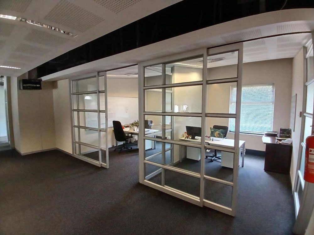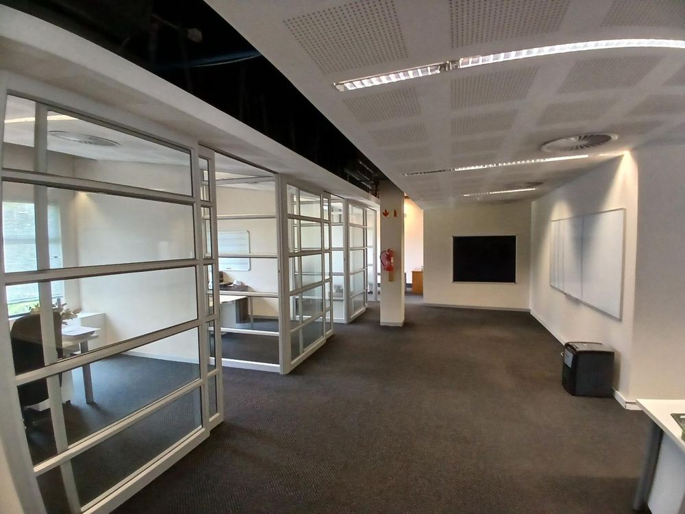 One of the standout features of this office is its direct access to a serene garden courtyard, offering a refreshing outdoor retreat for employees and clients alike. The ample natural light streaming into the space enhances productivity, while the sleek finishes reflect the high standards synonymous with Melrose Arch. This office is ideal for businesses seeking a premium setting in a vibrant and secure precinct.