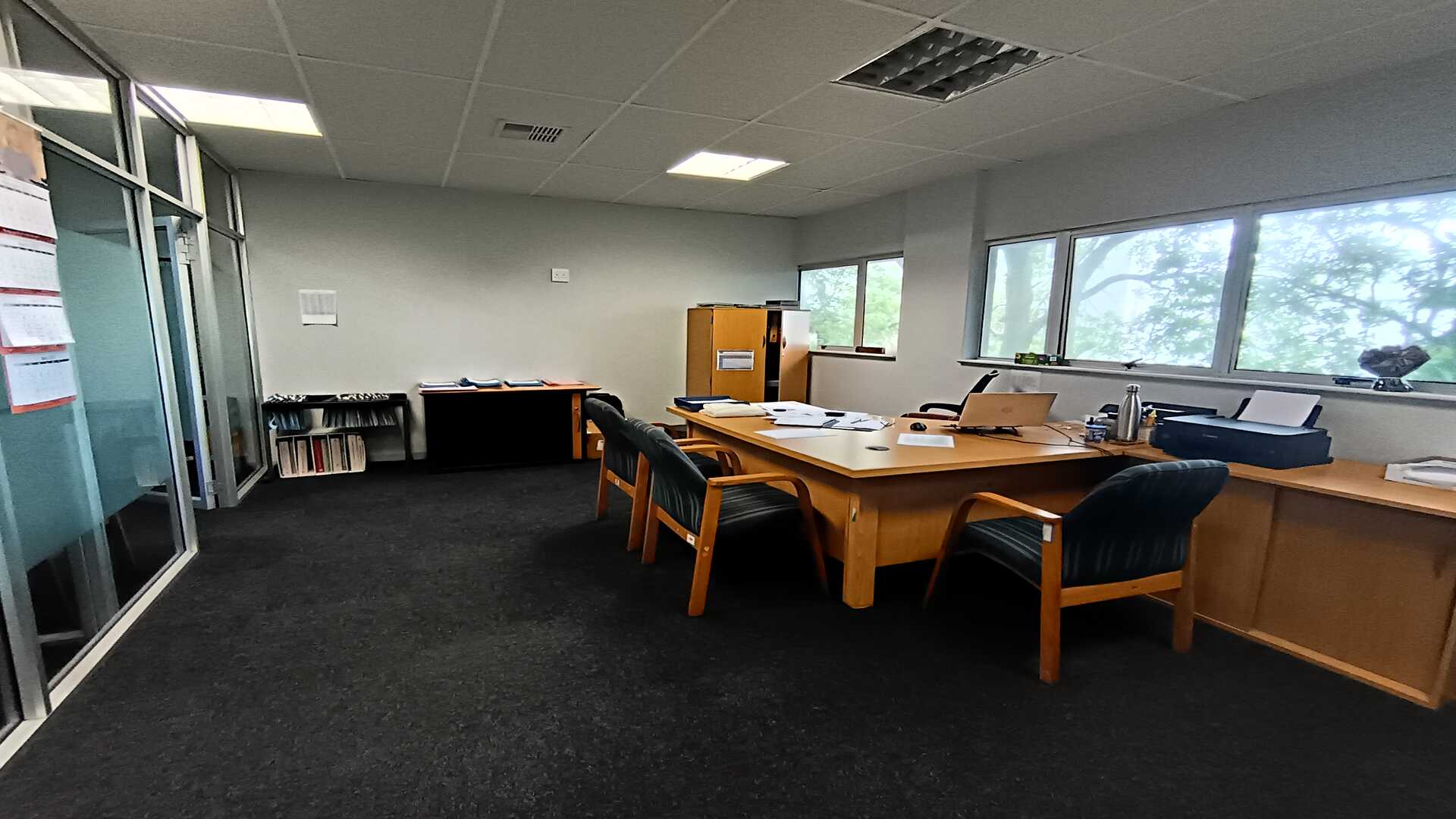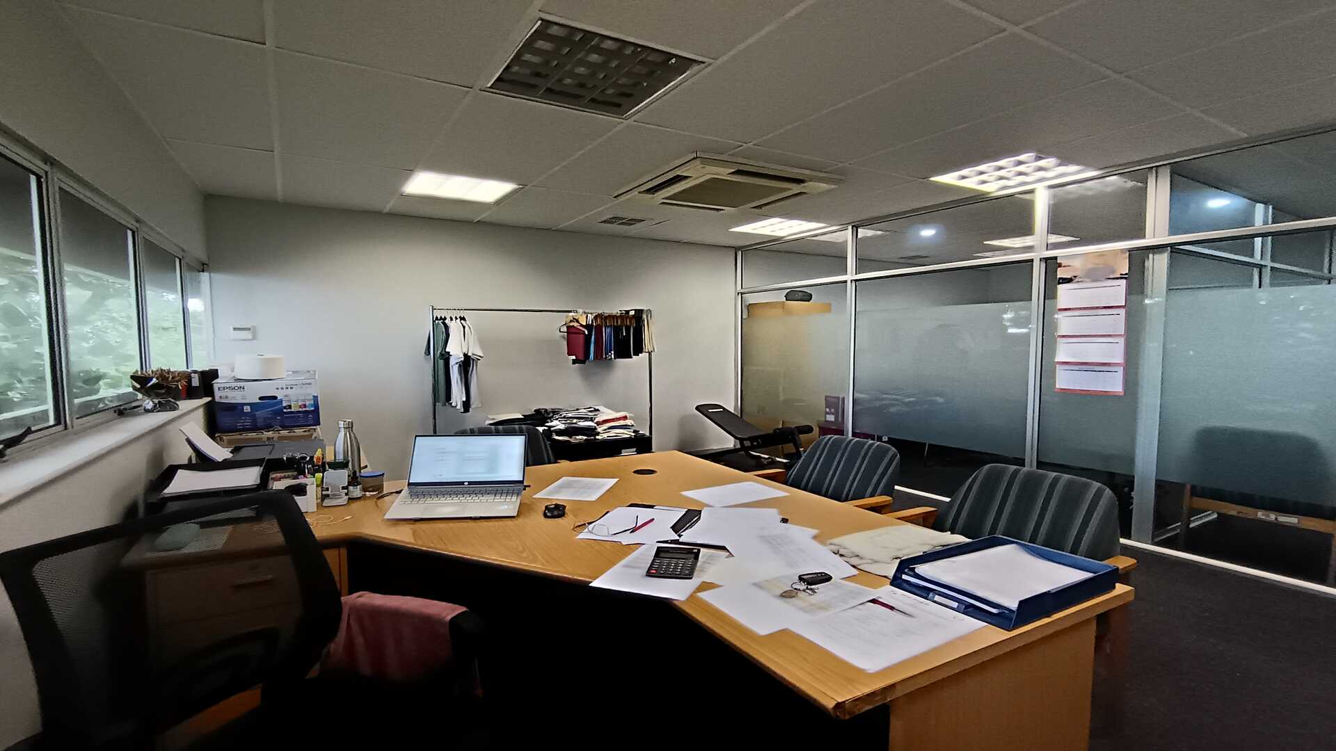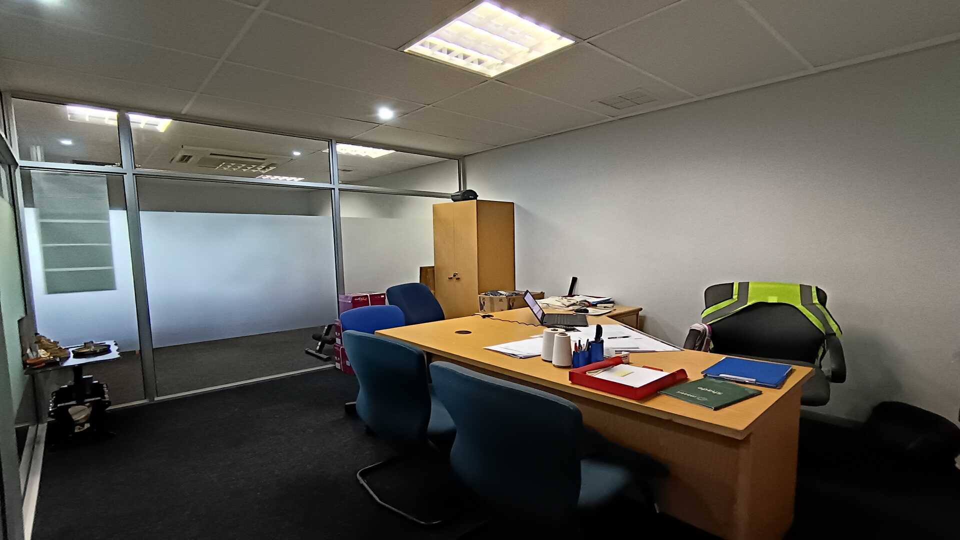 The office features glass-partitioned offices, providing a professional layout while maintaining a sense of openness and visibility. Screeded floors add to the clean, industrial-style aesthetic, making the space easy to customise to suit a variety of business needs.