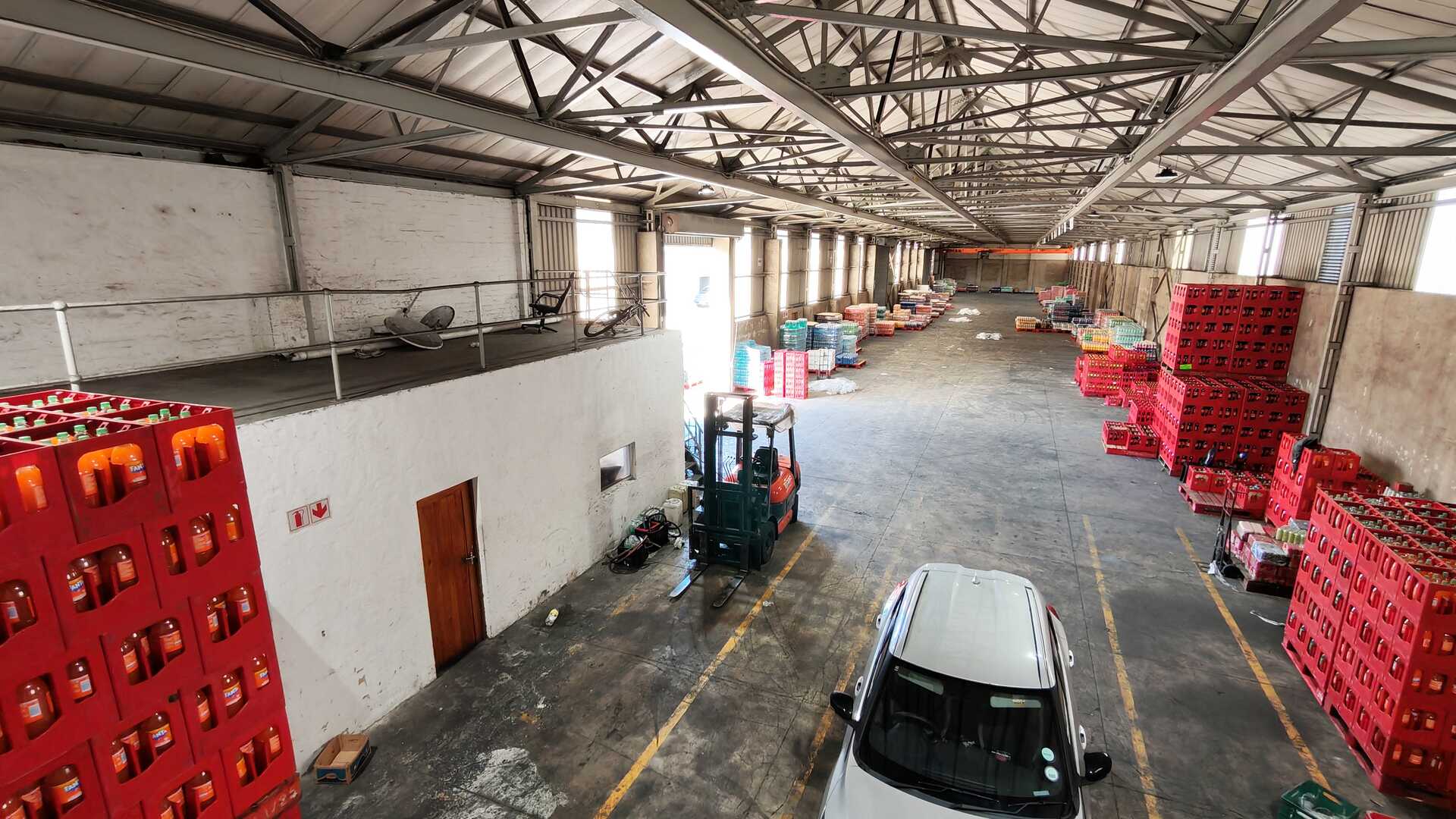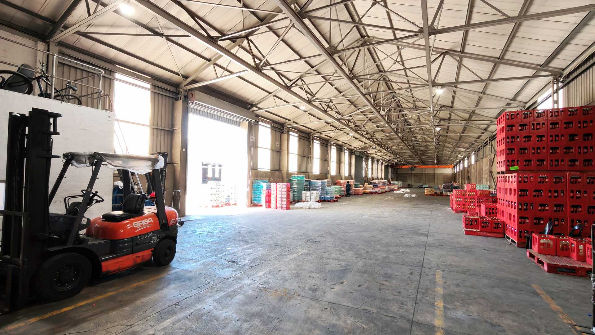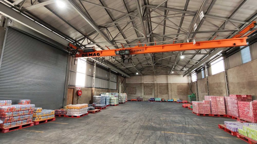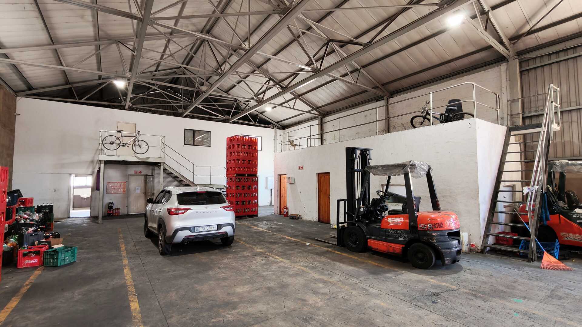 The facility features a ±1,400m2 clear-span warehouse with 6m height to eaves, allowing for efficient racking or bulk storage. Three 5m high roller shutter doors provide smooth loading and dispatch, while a 3-ton overhead gantry crane supports light industrial or fabrication operations. The park offers a large shared yard area with full super-link access, ensuring easy truck manoeuvrability.