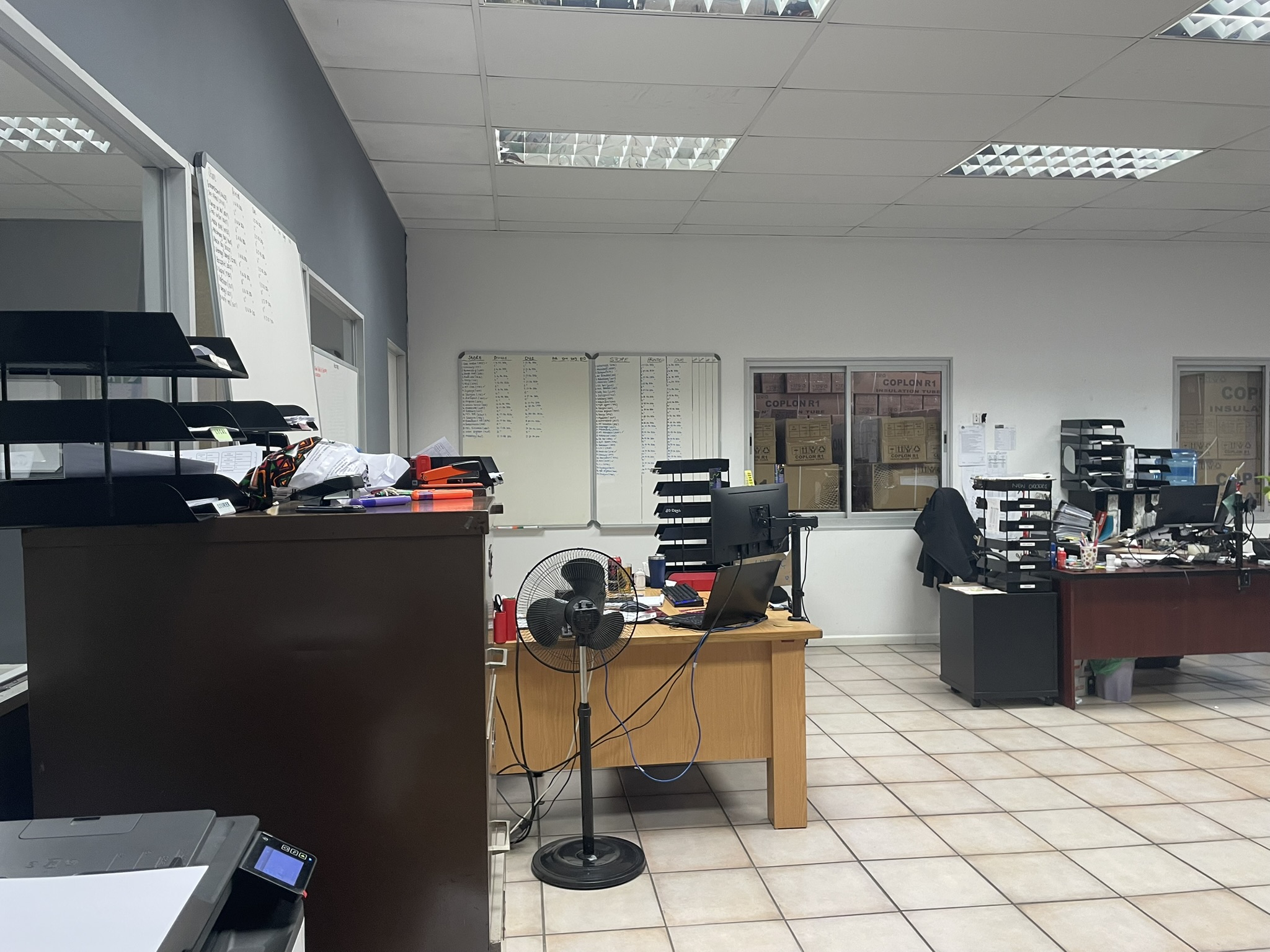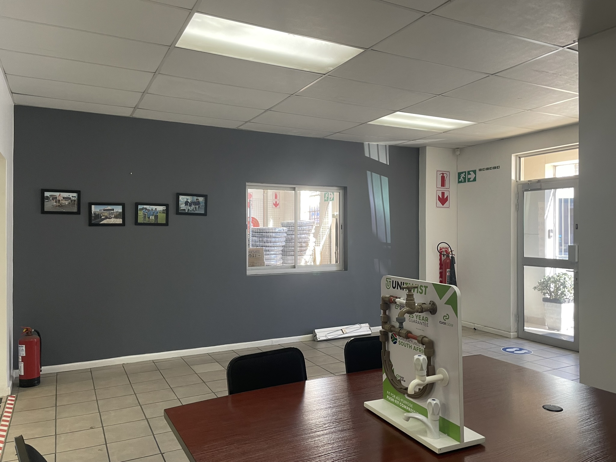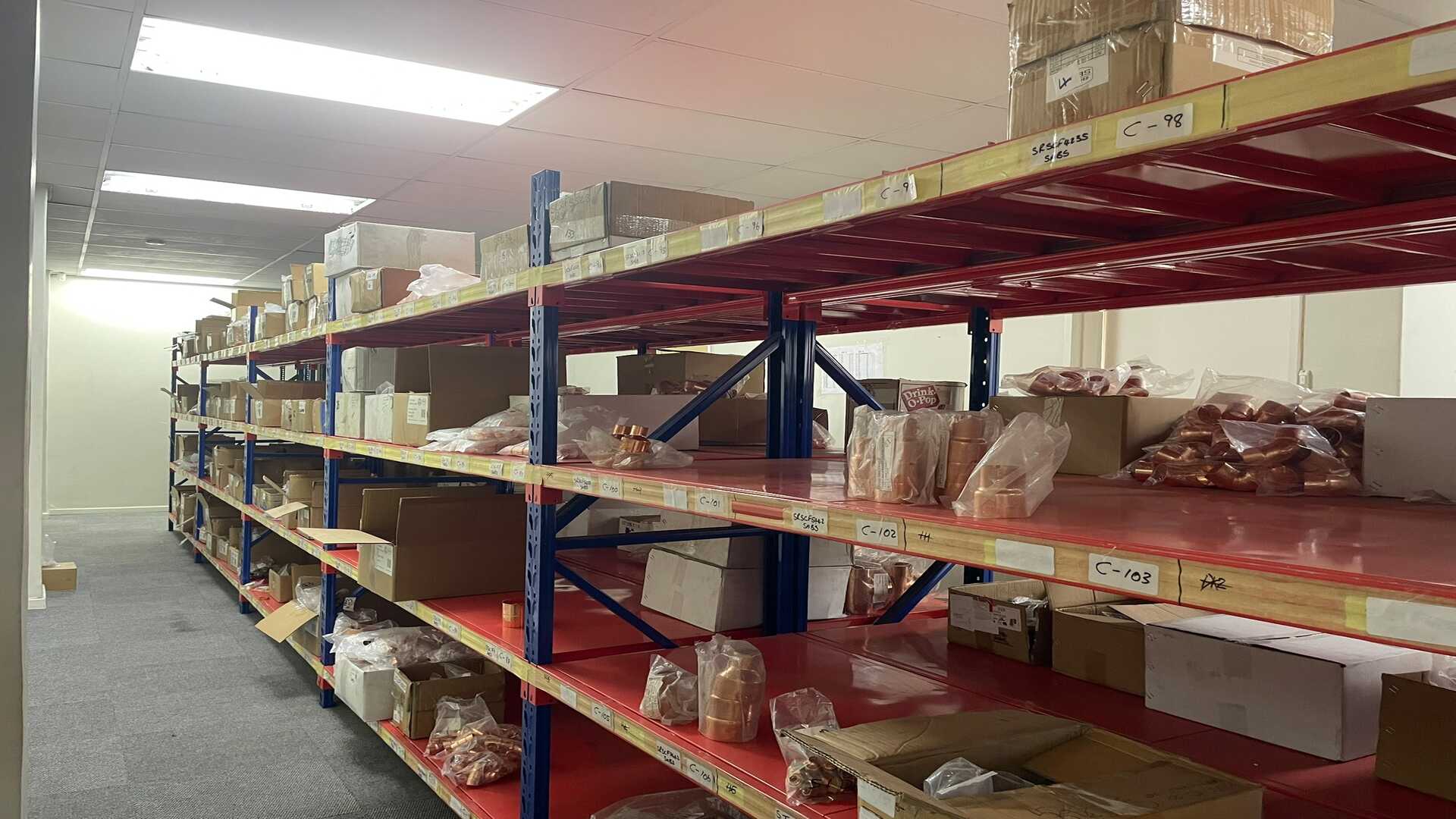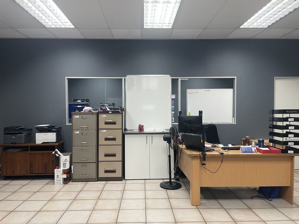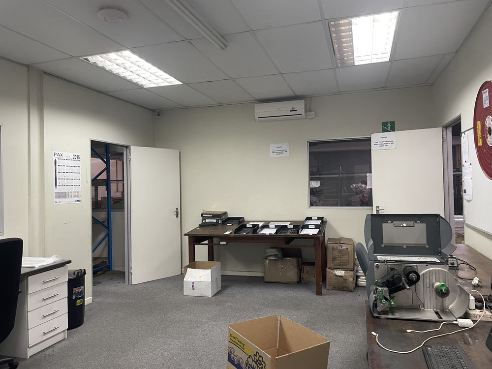 The premises features a practical combination of warehouse and office space. The administrative component includes an airy reception area, multiple offices and a boardroom, all fitted with air conditioning to ensure a comfortable working environment. Offices are positioned to provide clear oversight of warehouse activities, supporting effective management and coordination.
