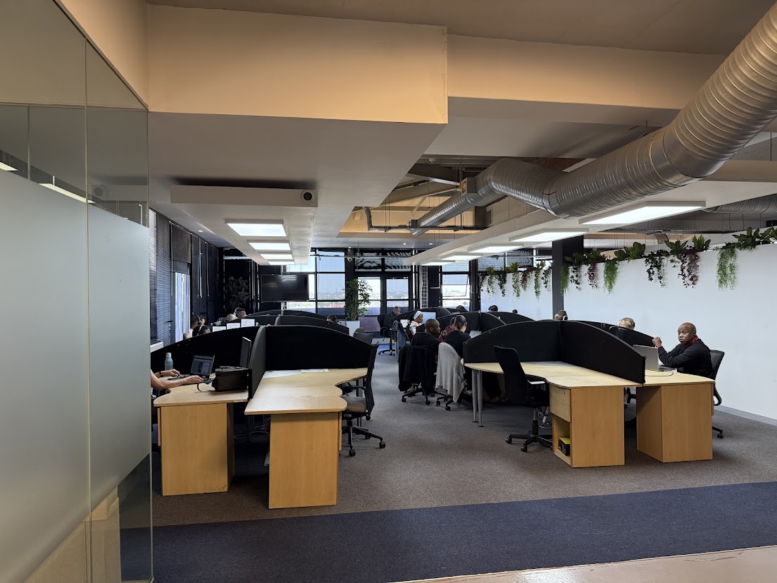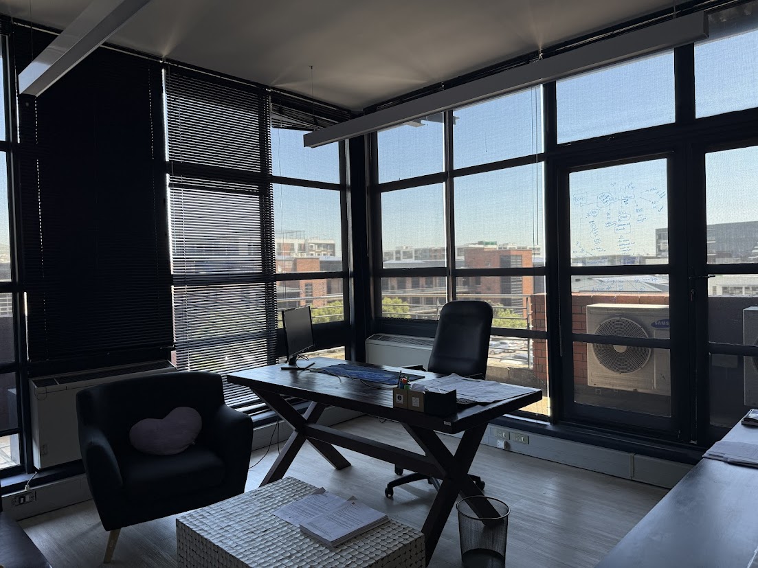 The space offers a flexible layout that can be tailored to suit a variety of business needs. Expansive windows fill the interior with natural light while providing sweeping views of the surrounding area, creating an uplifting and productive atmosphere. A private balcony, available at R9/m2 plus VAT, provides an ideal setting for breaks or informal meetings.