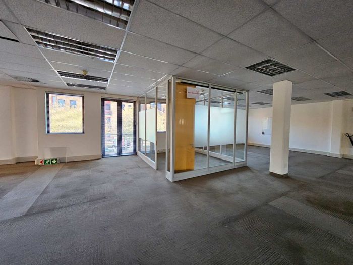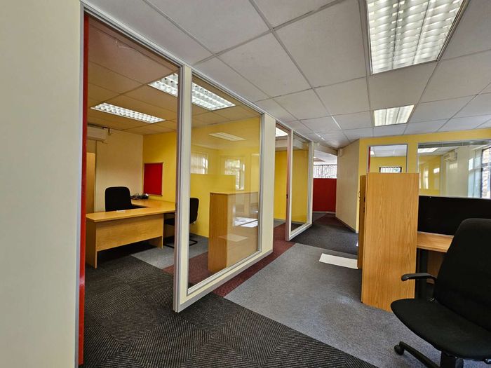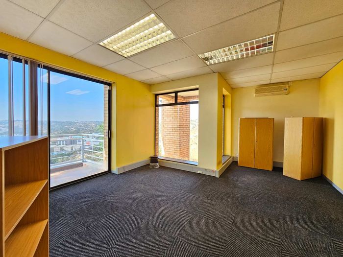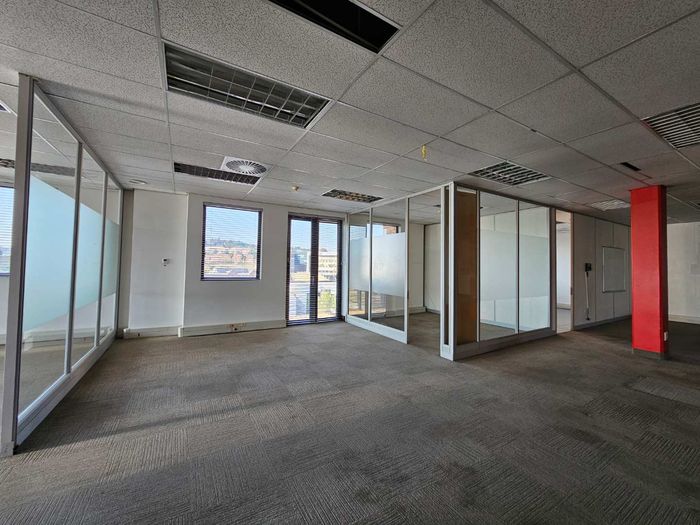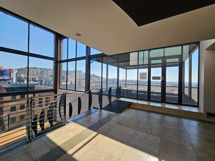 Work effortlessly in the heart of Roodepoort's commercial node, steps from 14th Avenue District and Clearwater Mall, with panoramic Sandton views and balcony, fibre and ample parking.