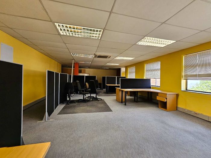 Work centrally with effortless access to the N1 and nearby Clearwater Mall in Constantia Kloof; double-storey 1,900sqm office with balconies offering panoramic Sandton views, six bathrooms and ample parking.