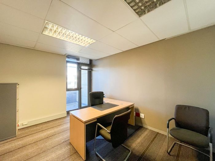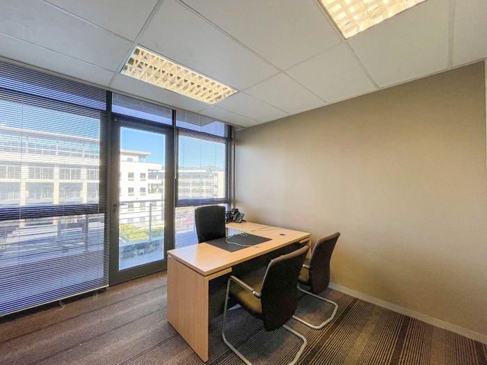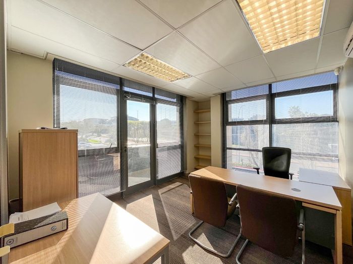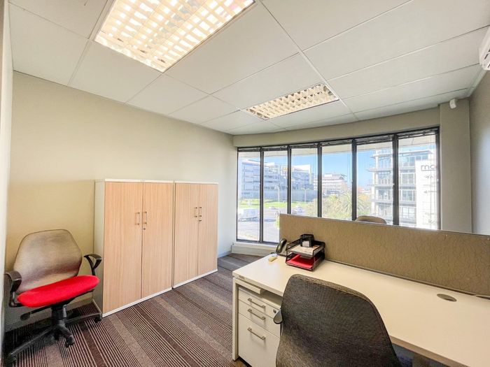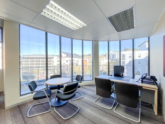 Work from a vibrant Tyger Valley hub with easy N1/N7 access and walking distance to restaurants; 631m² first-floor office with two boardrooms, balconies, and 24-hour security.