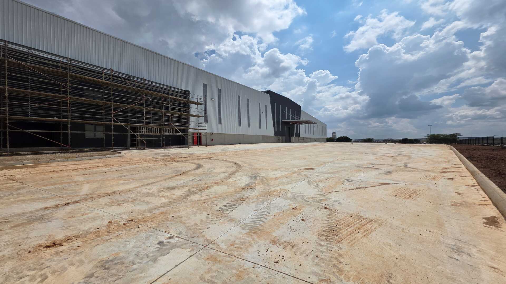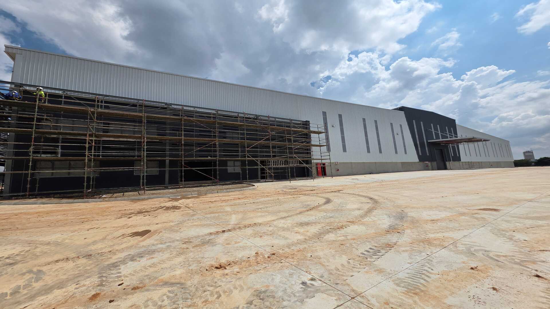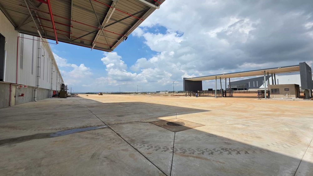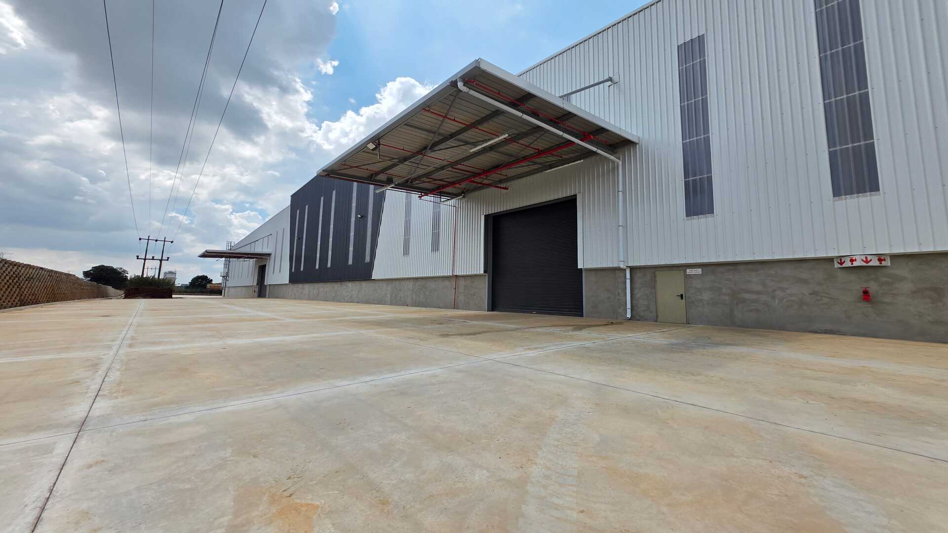 Modern logistics facility located in an Access Controlled Park on the corner of Modderfontein (R25) and Pretoria (M57) Roads in Kempton Park. Total GLA under roof of 22,455sqm, warehouse size 19,535sqm, office size of 958sqm double volume and yard space of 21,188sqm. 23 truck staging bays, 11 covered loading doors and 214 parking bays. 12m Eaves Height. FM2 Floor – suited to racking. High Hazard, ASIB Compliant Sprinkler System, 17.5mm density. Capacity to link into in-rack sprinklers. The property offers multiple covered, docked and on-grade, loading areas and provides for cross dock operations. Generous yard space offers efficient movement, and staging, on site. Located between 2 off-ramps from the R21,less than 15 minutes from O.R. Tambo International, with linkages to Modderfontein and the N1 - this property offers the ultimate convenience when it comes to connectivity and access. Completion date 01 March 2026.