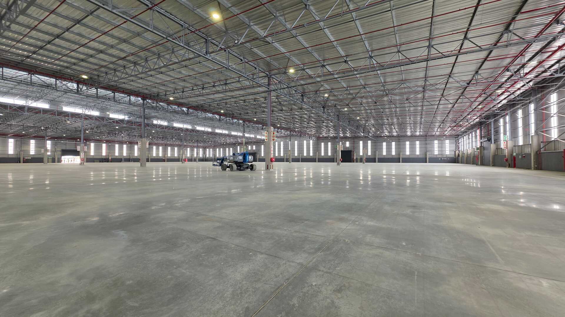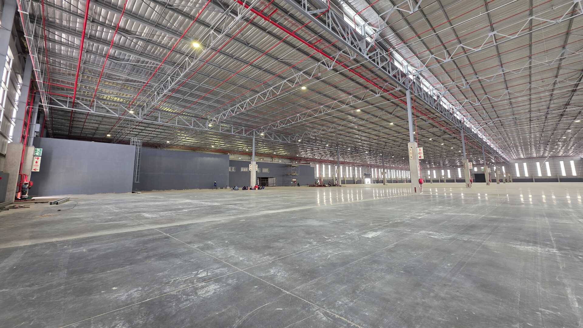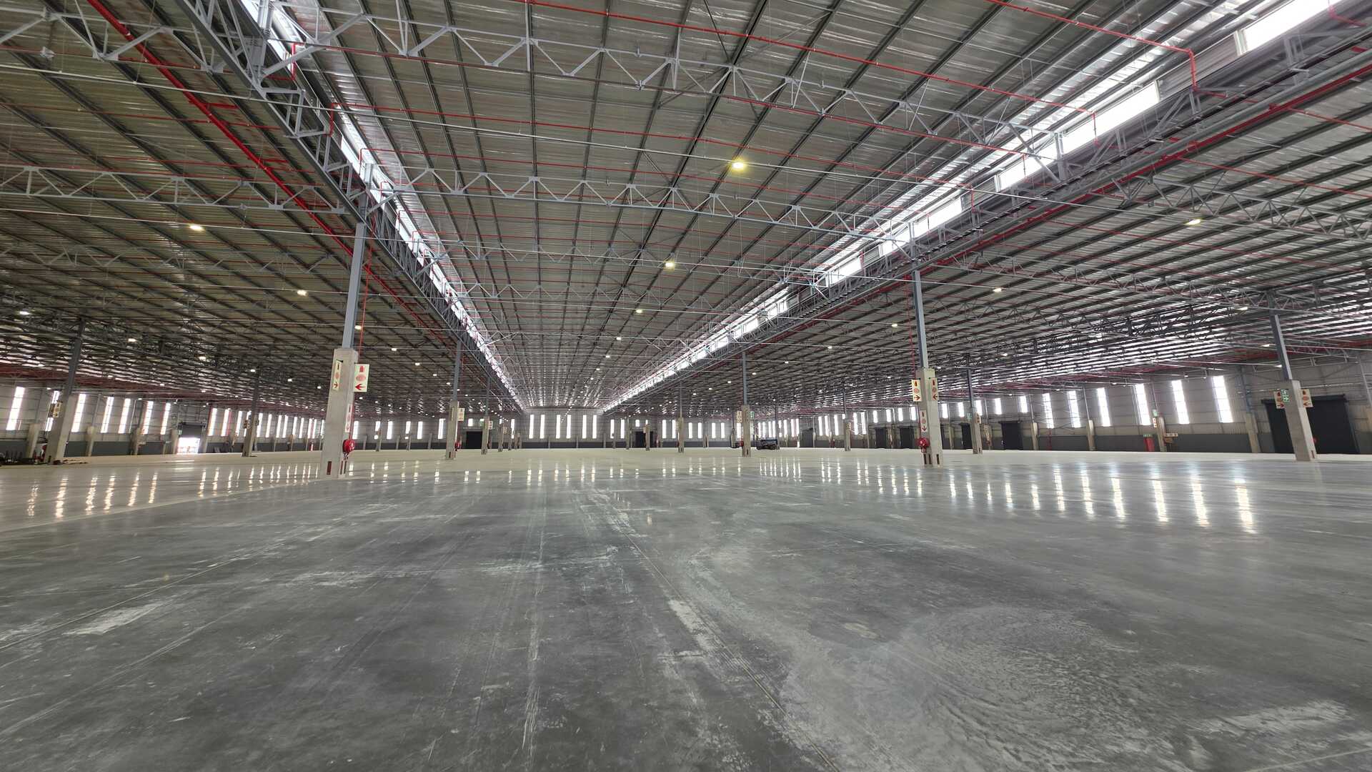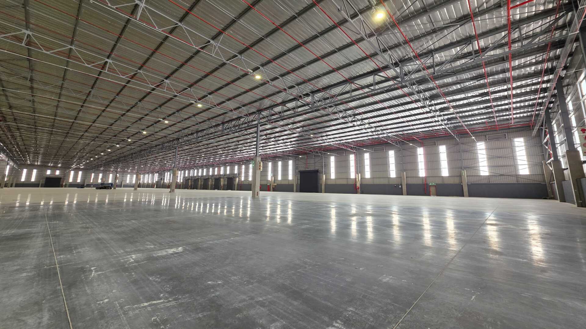 Modern logistics facility located in an Access Controlled Park on the corner of Modderfontein (R25) and Pretoria (M57) Roads in Kempton Park. Total GLA under roof of 22,455sqm, warehouse size 19,535sqm, office size of 958sqm double volume and yard space of 21,188sqm. 23 truck staging bays, 11 covered loading doors and 214 parking bays. 12m Eaves Height. FM2 Floor – suited to racking. High Hazard, ASIB Compliant Sprinkler System, 17.5mm density. Capacity to link into in-rack sprinklers. The property offers multiple covered, docked and on-grade, loading areas and provides for cross dock operations. Generous yard space offers efficient movement, and staging, on site. Located between 2 off-ramps from the R21,less than 15 minutes from O.R. Tambo International, with linkages to Modderfontein and the N1 - this property offers the ultimate convenience when it comes to connectivity and access. Completion date 01 March 2026.