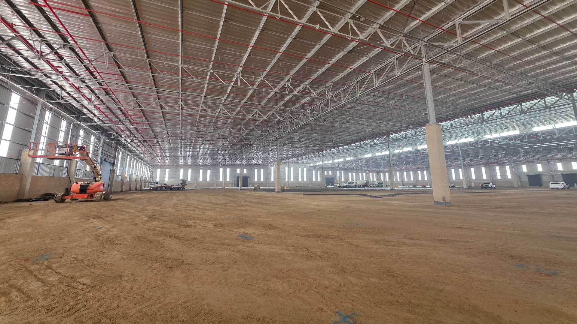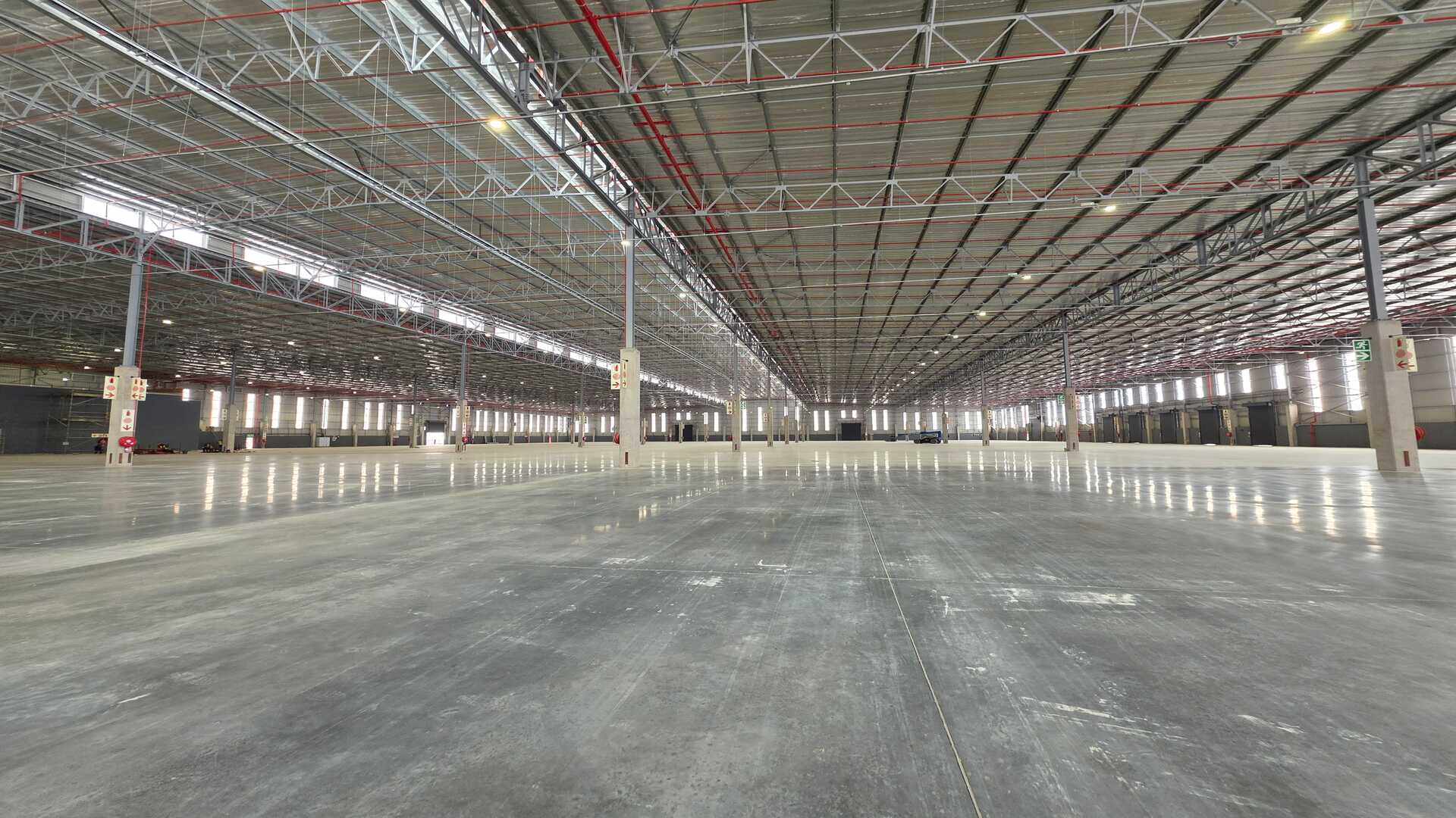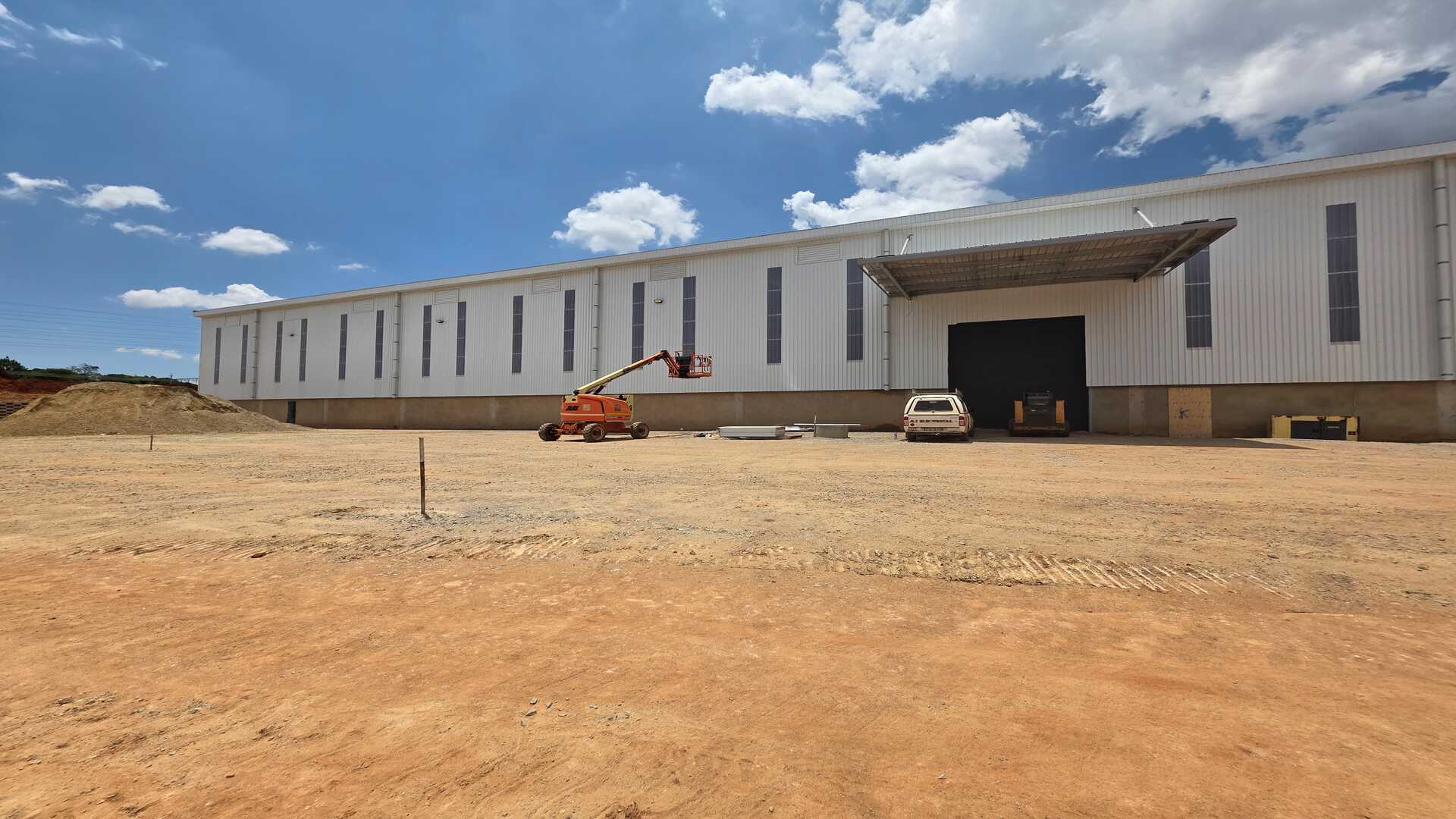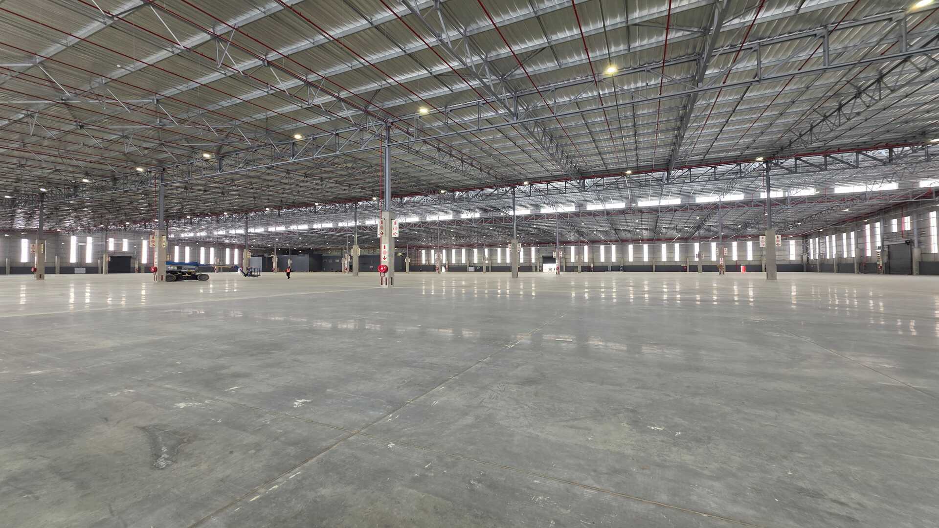 Modern logistics facility located in an Access Controlled Park on the corner of Modderfontein (R25) and Pretoria (M57) Roads in Kempton Park. Total GLA under roof of 22,455sqm, warehouse size 19,535sqm, office size of 958sqm double volume and yard space of 21,188sqm. 23 truck staging bays, 11 covered loading doors and 214 parking bays. 12m Eaves Height. FM2 Floor – suited to racking. High Hazard, ASIB Compliant Sprinkler System, 17.5mm density. Capacity to link into in-rack sprinklers. The property offers multiple covered, docked and on-grade, loading areas and provides for cross dock operations. Generous yard space offers efficient movement, and staging, on site. Located between 2 off-ramps from the R21,less than 15 minutes from O.R. Tambo International, with linkages to Modderfontein and the N1 - this property offers the ultimate convenience when it comes to connectivity and access. Completion date 01 March 2026.