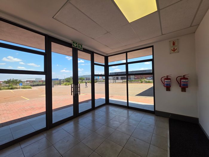 Work-ready logistics hub in a secure industrial estate, minutes from the R21 — flexible double warehouse with removable dividing wall, four large roller shutters and generous yard parking.