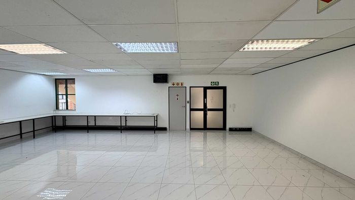 Efficient logistics hub in Isando's 24-hour park with direct R21 access, ideal for distribution and cold-chain operations. Features 5,994m² warehouse, cold storage, 3-phase power, roller doors.