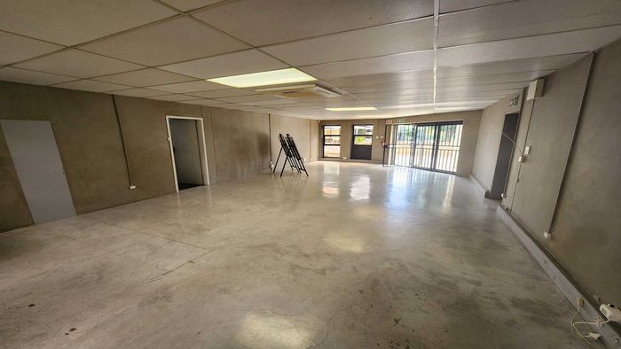 Elevate your business address in Bryanston’s refreshed Hurlingham Office Park, with landscaped grounds and 24/7 security; 235m² fitted suite includes private offices, boardroom, fibre and generator backup.