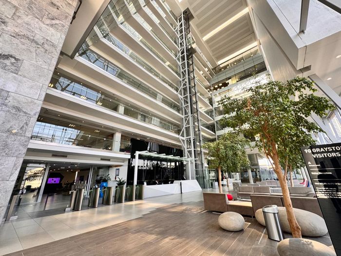 Command Sandton prestige at 90 Grayston with panoramic city views, a lavish boardroom, fully fitted kitchen, automated blinds and an elegant entrance with communal canteen.