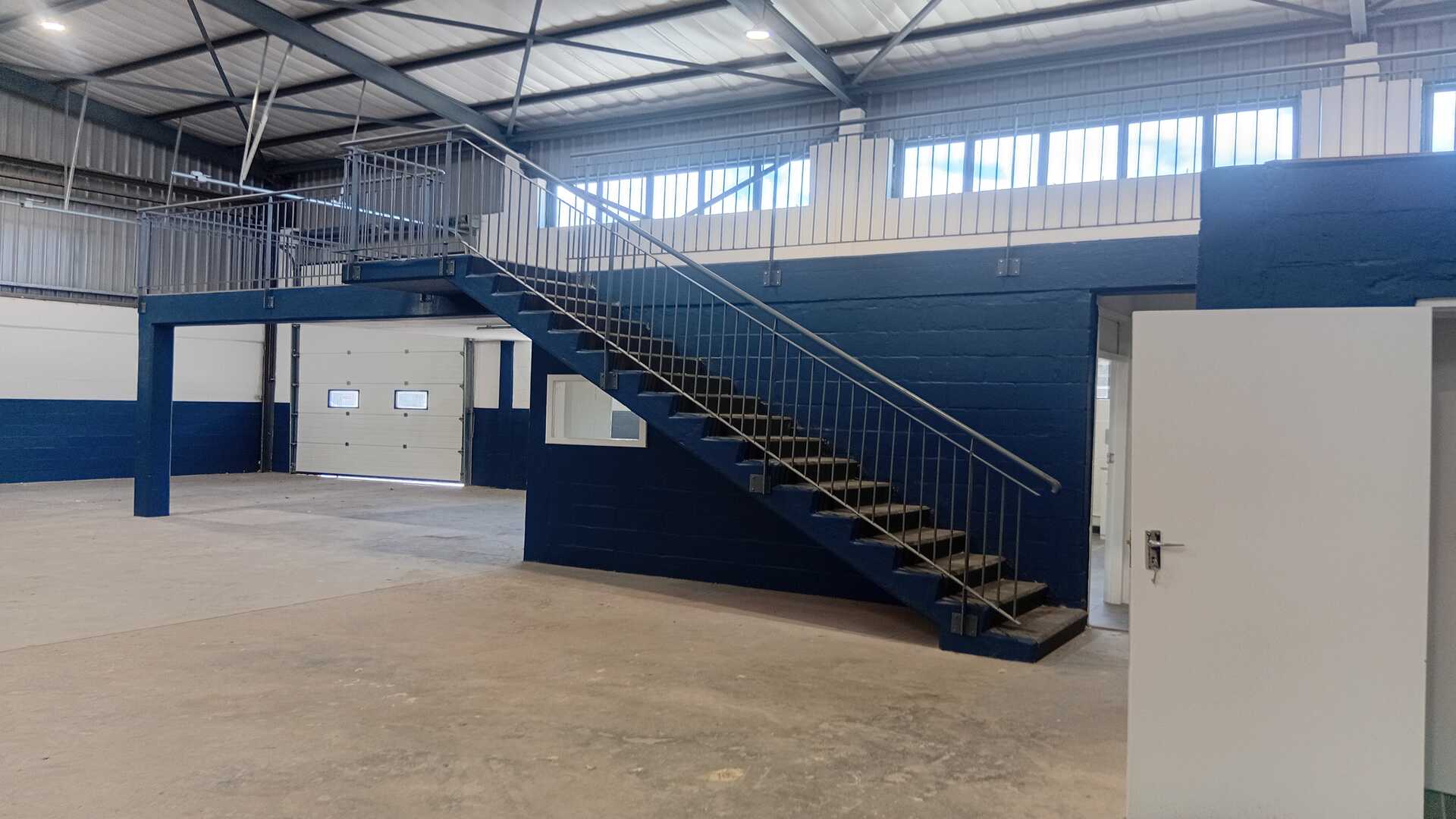 The unit provides a modern reception, comfortable 2nd office, staff area/canteen space, large double volume workshop/warehouse with good natural light and a solid mezanine above the reception/office area.
