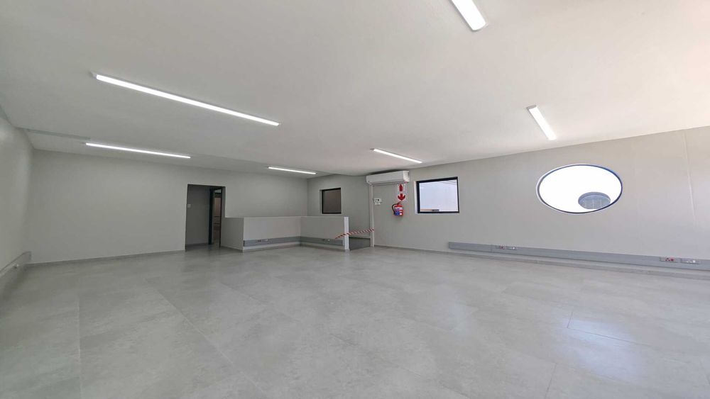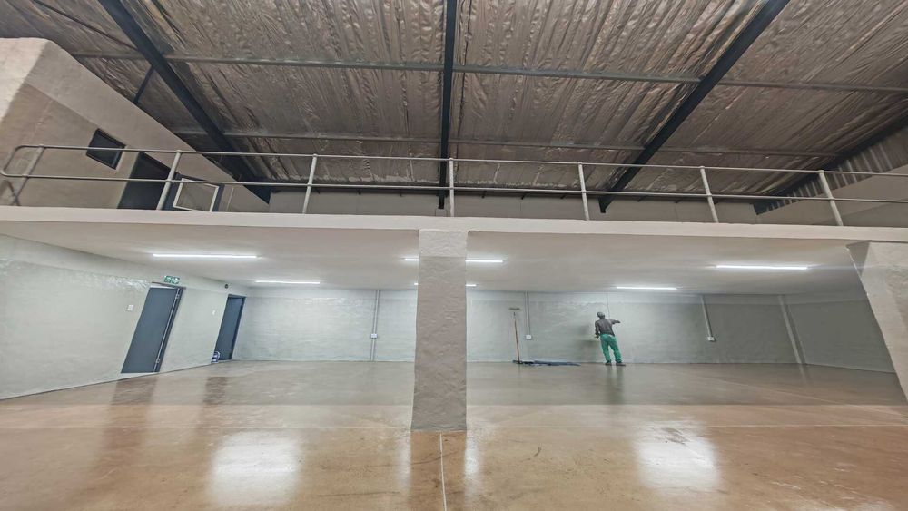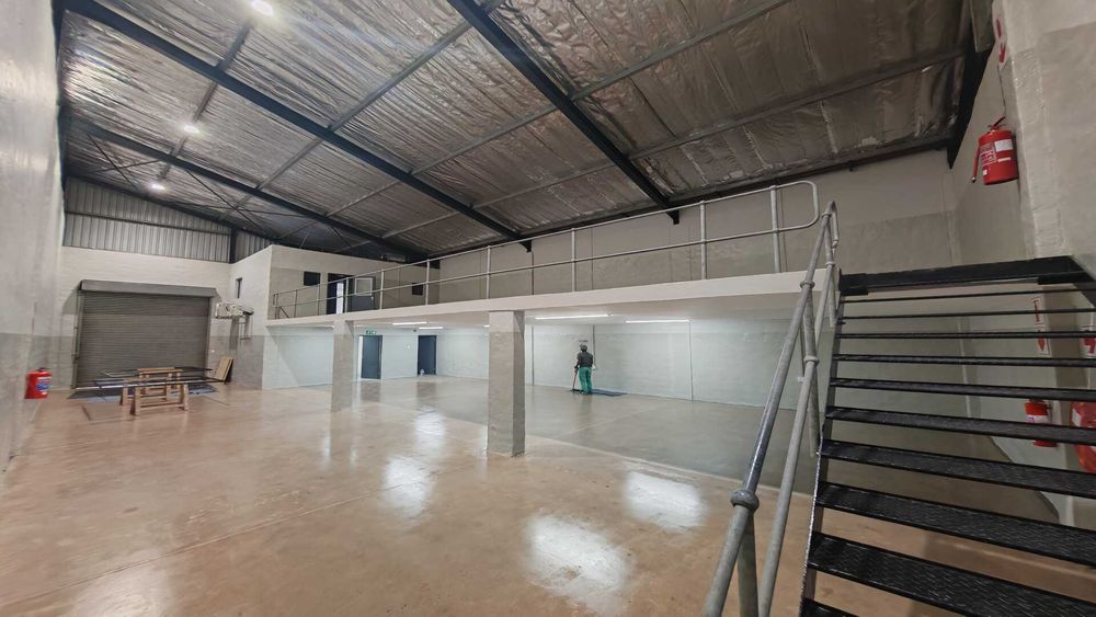 We are pleased to offer this neat 351m2 mini factory / warehouse to rent / to let in a secure industrial complex in the highly sought-after Riverhorse Valley. Currently undergoing renovation, this well-maintained unit features a smart walk-in reception area and a large open-plan upstairs office complete with kitchenette and private toilet. The warehouse component offers 3-phase power, good internal height, and an on-grade roller shutter door providing easy drive-in access to the factory floor. A solid concrete mezzanine level provides additional storage space and can be enclosed to create extra office area if required, while staff ablutions include a toilet and shower for added convenience.