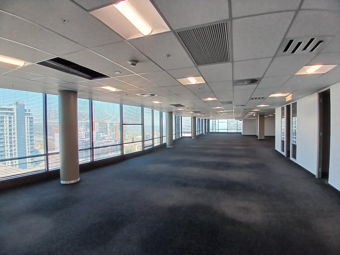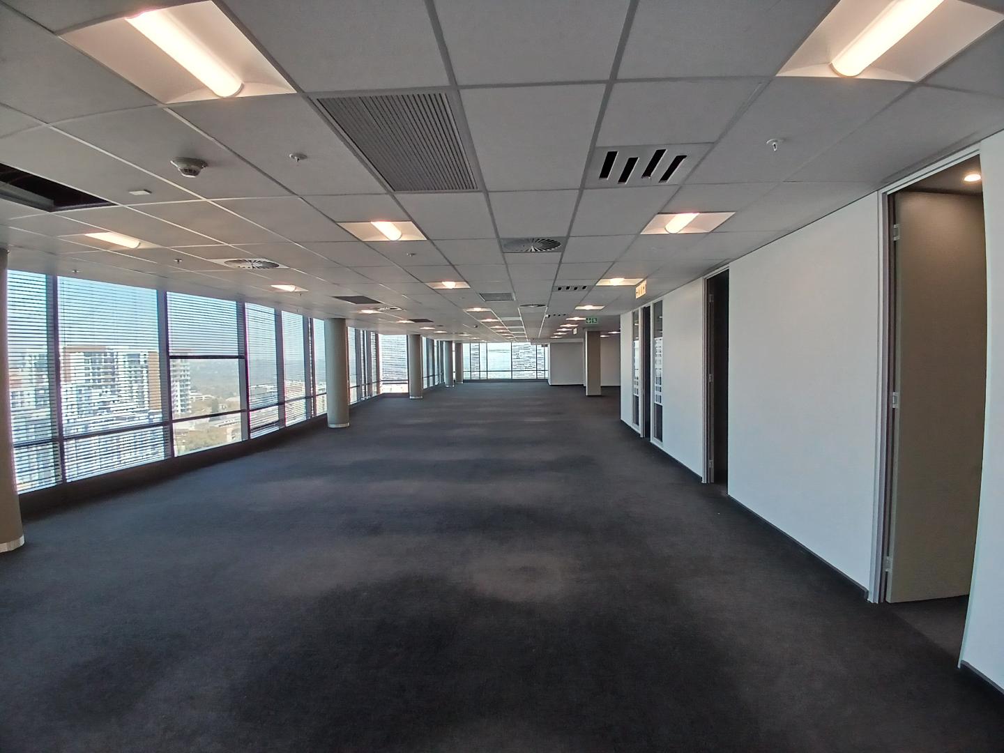 Located on the 2nd floor of Rosebank Tower at 19 Biermann Avenue, this 726 sqm office space offers a blend of open-plan design and functional features. The space features a well-designed open-plan layout complemented by several smaller offices, providing a versatile environment that supports both collaborative work and individual focus. This configuration is ideal for businesses seeking a balance between open workspace and private meeting areas.