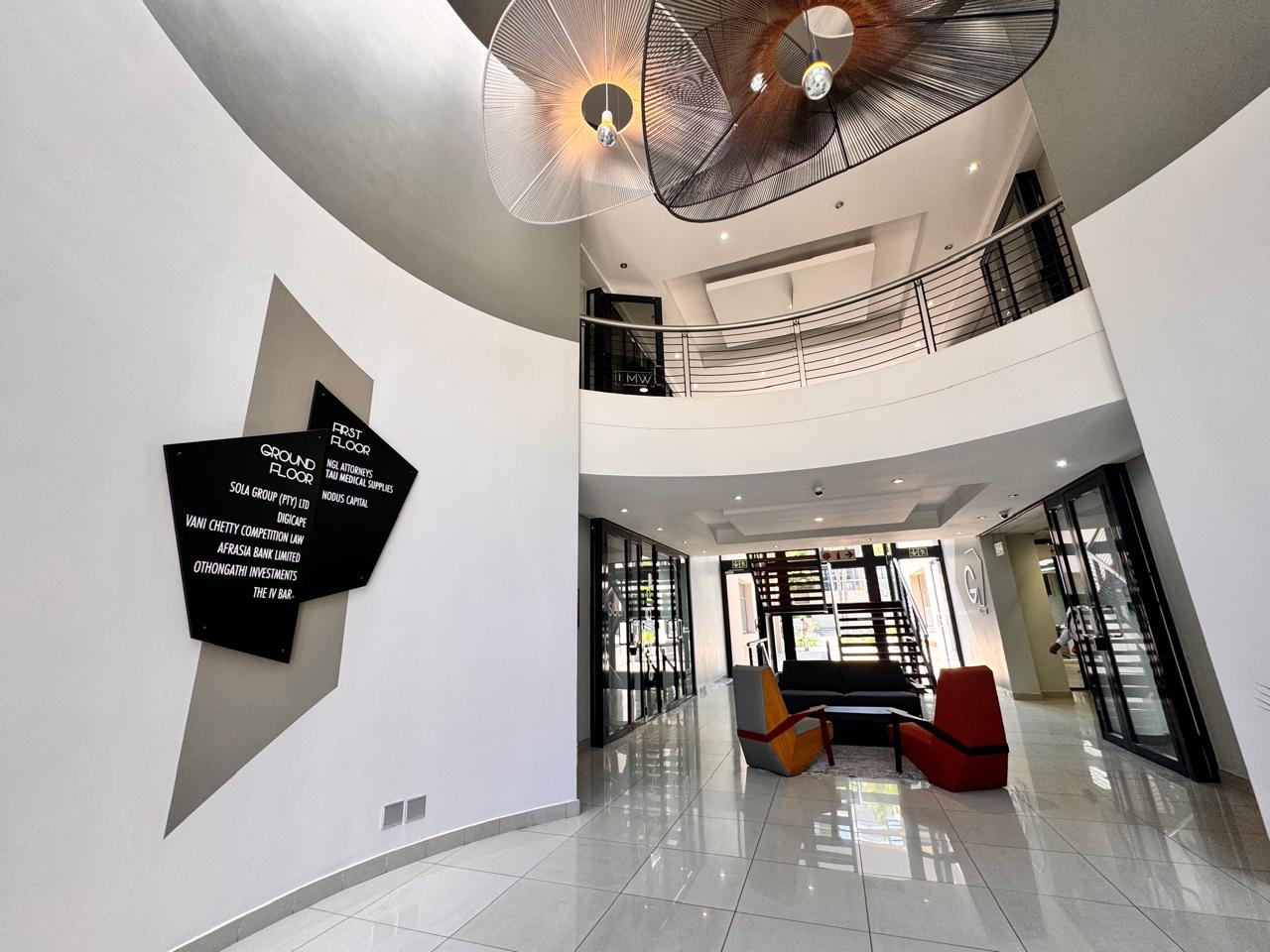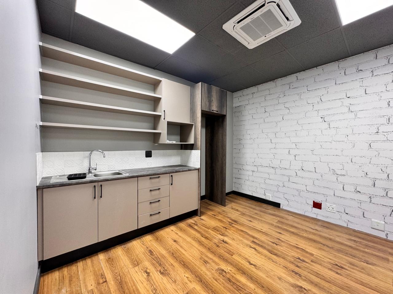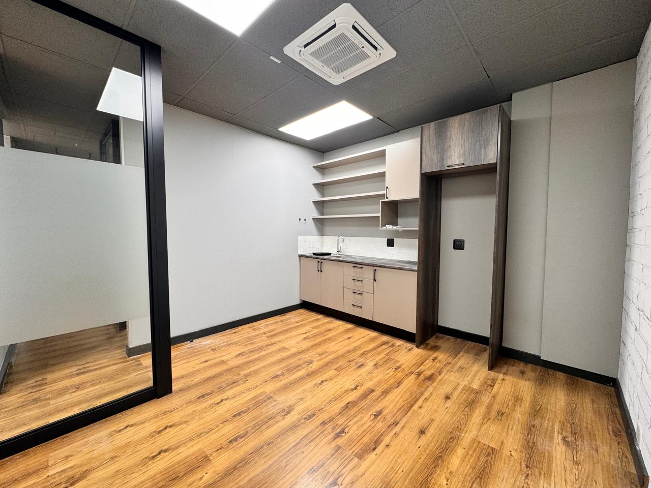 This beautifully designed 90 sqm office at 39 Rivonia Road provides a seamless blend of functionality and style. Step into a welcoming reception and waiting area, setting the perfect tone for clients and visitors. The open-plan space is ideal for collaborative work, while the private enclosed office offers the perfect retreat for focused tasks or meetings. The kitchenette, complete with a seating area, adds a convenient space for quick breaks or informal catch-ups.