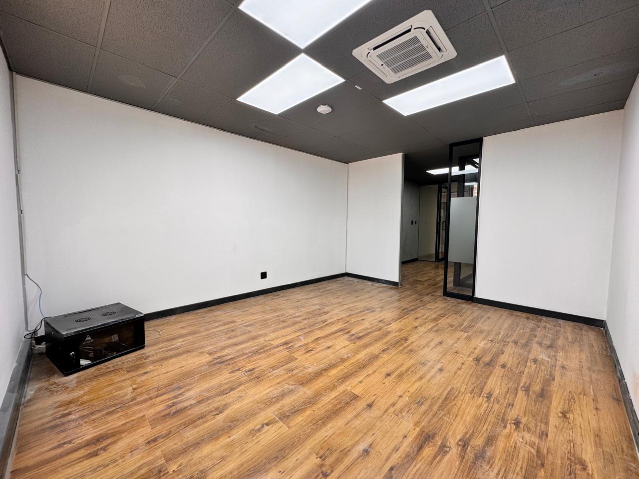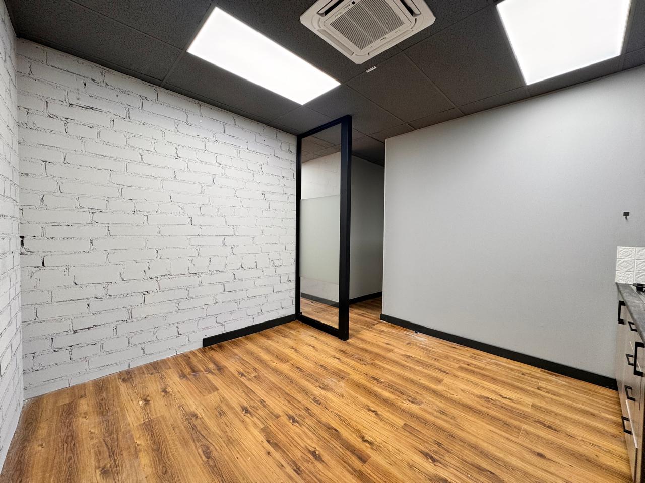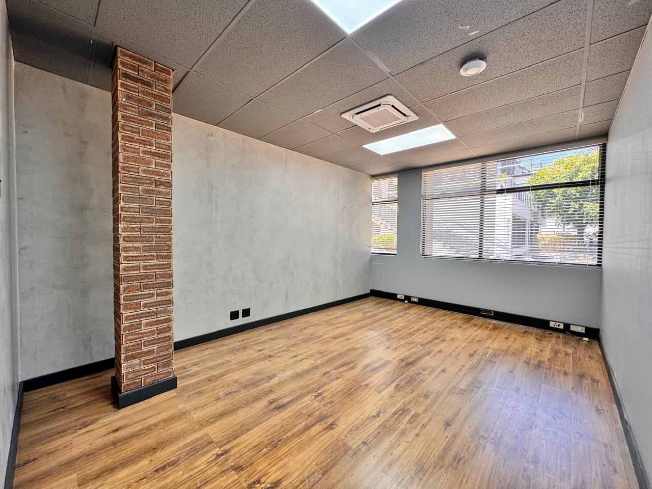 This beautifully designed 90 sqm office at 39 Rivonia Road provides a seamless blend of functionality and style. Step into a welcoming reception and waiting area, setting the perfect tone for clients and visitors. The open-plan space is ideal for collaborative work, while the private enclosed office offers the perfect retreat for focused tasks or meetings. The kitchenette, complete with a seating area, adds a convenient space for quick breaks or informal catch-ups.