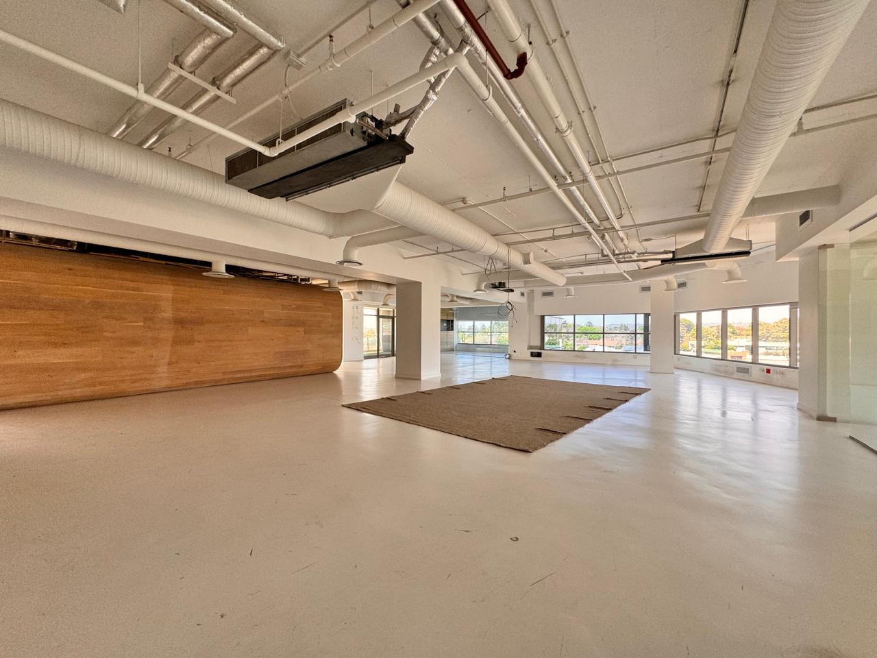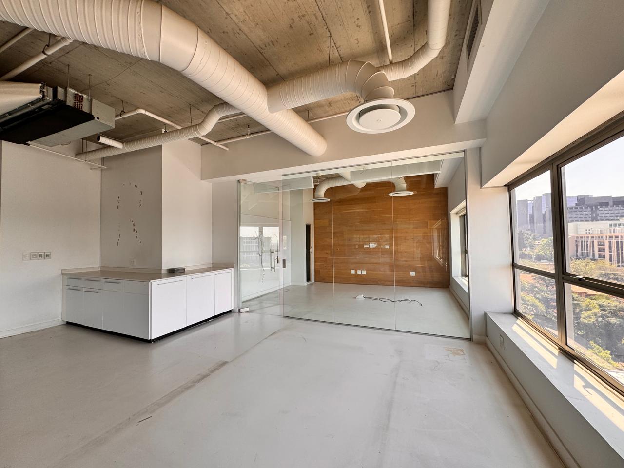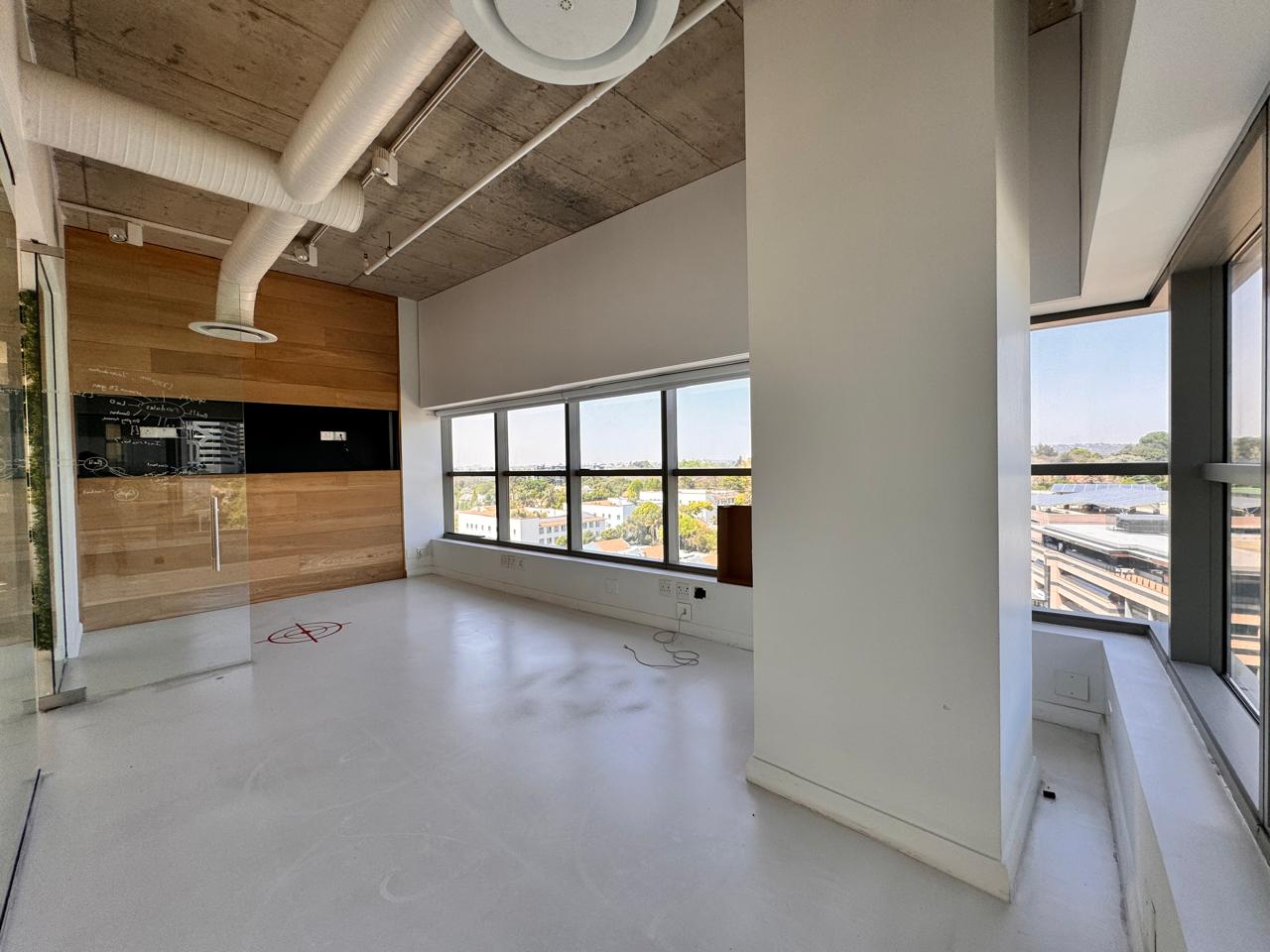 Welcome to this remarkable 422 sqm P-Grade office space at 114 West Street, where retro-industrial charm meets sophisticated elegance. As you step inside, you are greeted by an expansive open area that exudes character, complemented by striking wooden accents and high ceilings that create a vibrant and inspiring atmosphere. The layout is thoughtfully designed with multiple enclosed offices, perfect for collaboration and focused work, while the stunning wooden boardroom serves as an impressive venue for meetings and presentations. The office also features a well-appointed kitchen, private toilets, and screeded flooring that enhances the industrial aesthetic, offering a unique backdrop for your team’s creativity to flourish.