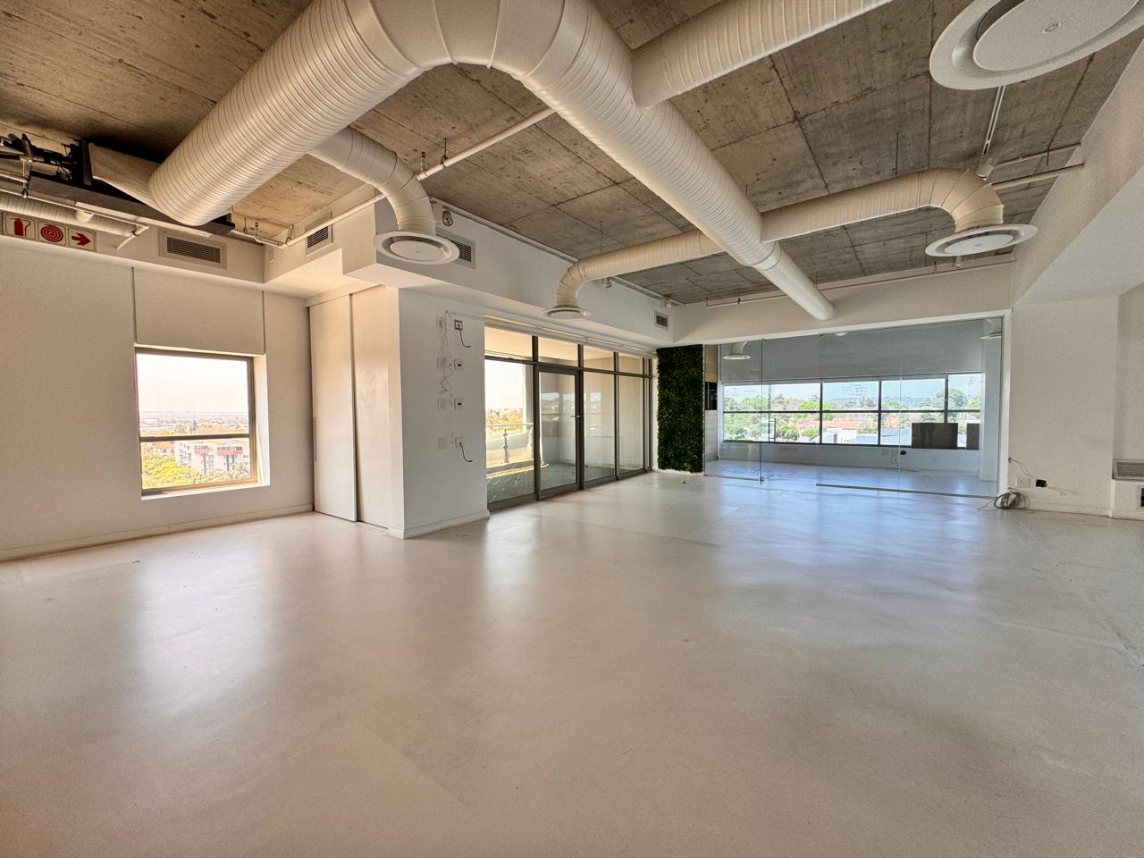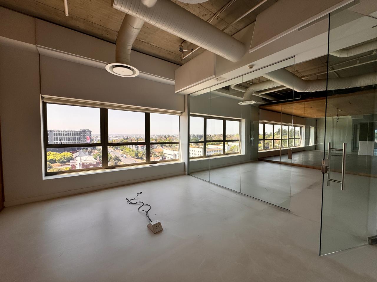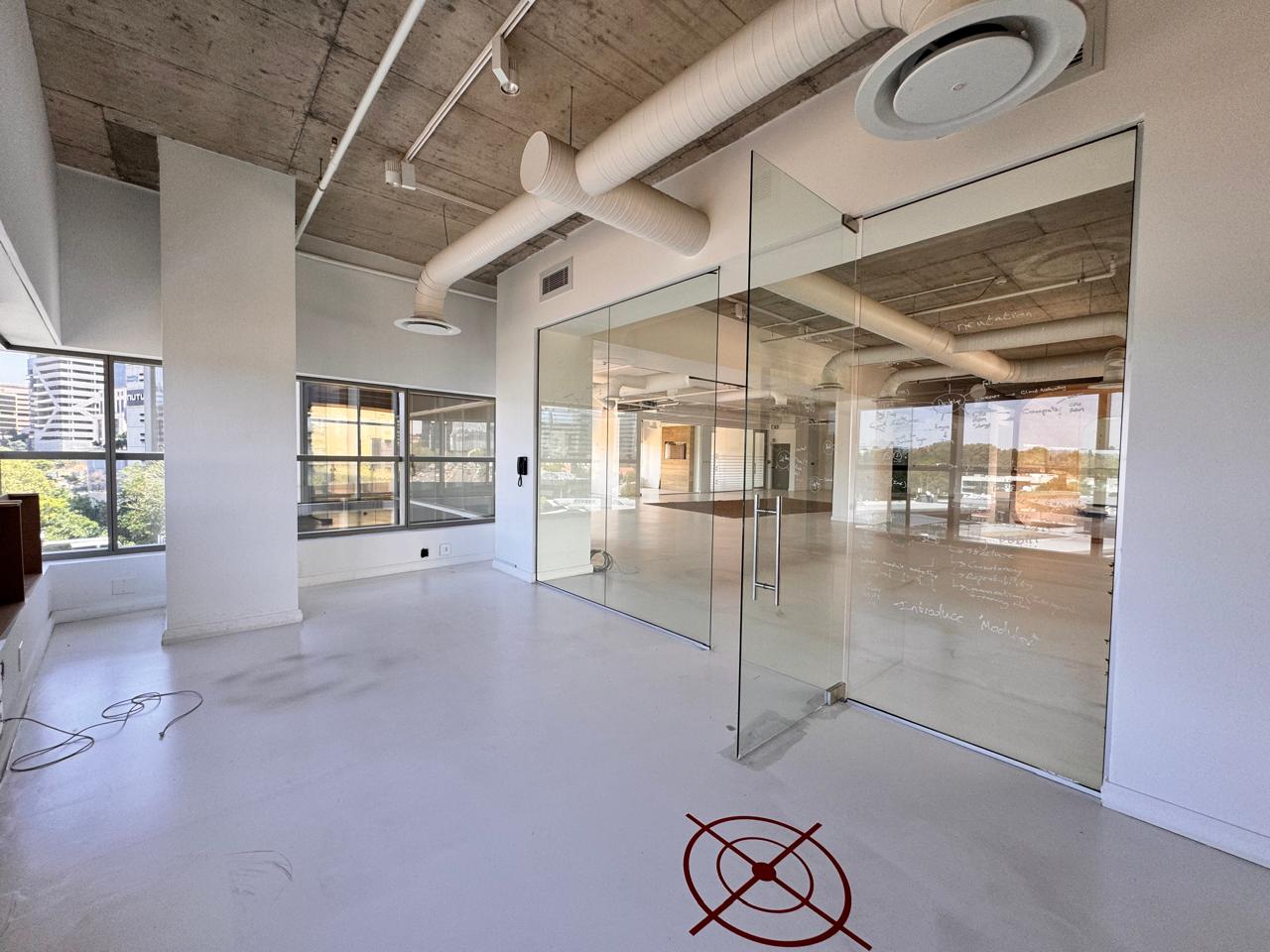 Welcome to this remarkable 422 sqm P-Grade office space at 114 West Street, where retro-industrial charm meets sophisticated elegance. As you step inside, you are greeted by an expansive open area that exudes character, complemented by striking wooden accents and high ceilings that create a vibrant and inspiring atmosphere. The layout is thoughtfully designed with multiple enclosed offices, perfect for collaboration and focused work, while the stunning wooden boardroom serves as an impressive venue for meetings and presentations. The office also features a well-appointed kitchen, private toilets, and screeded flooring that enhances the industrial aesthetic, offering a unique backdrop for your team’s creativity to flourish.