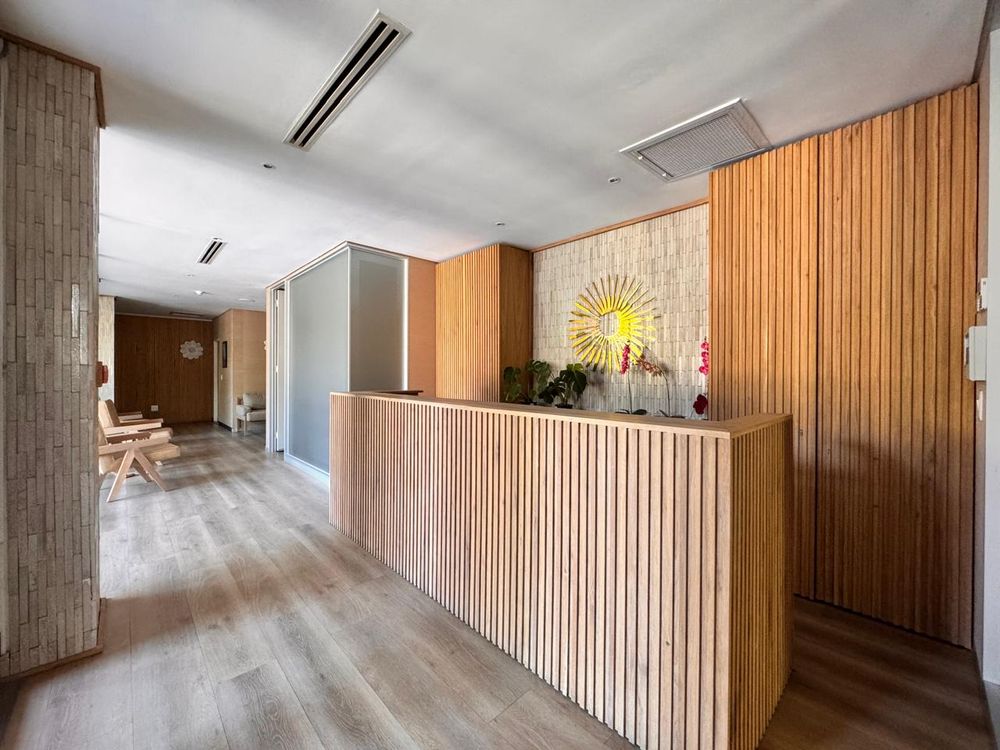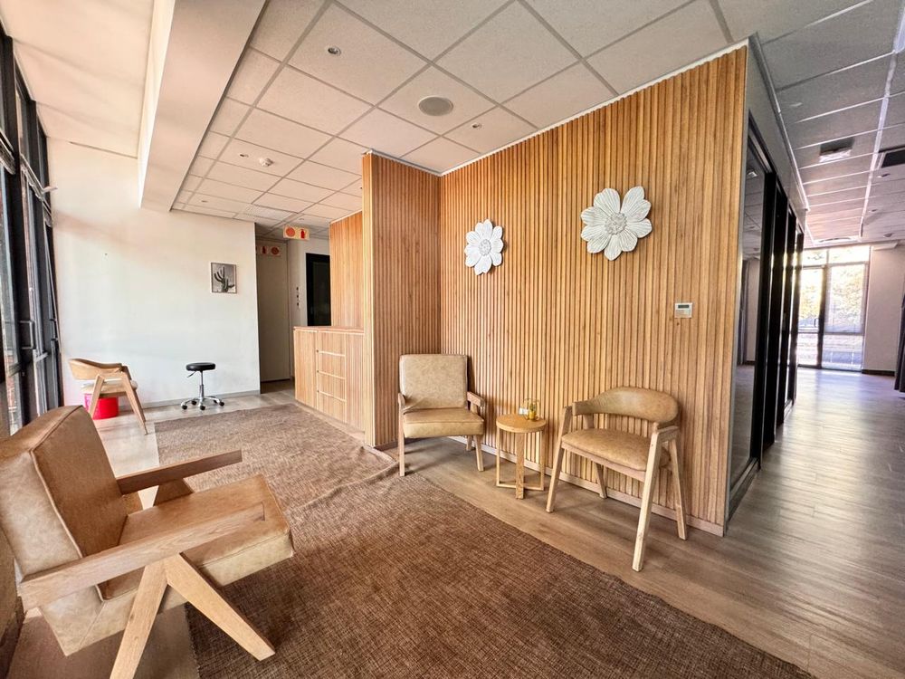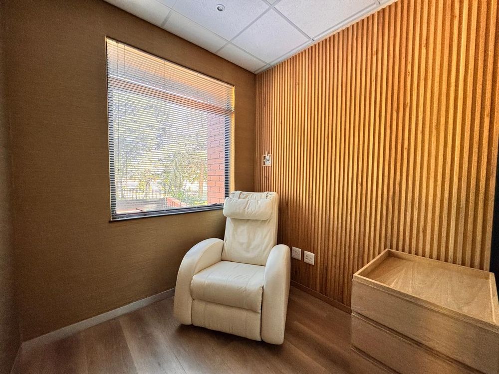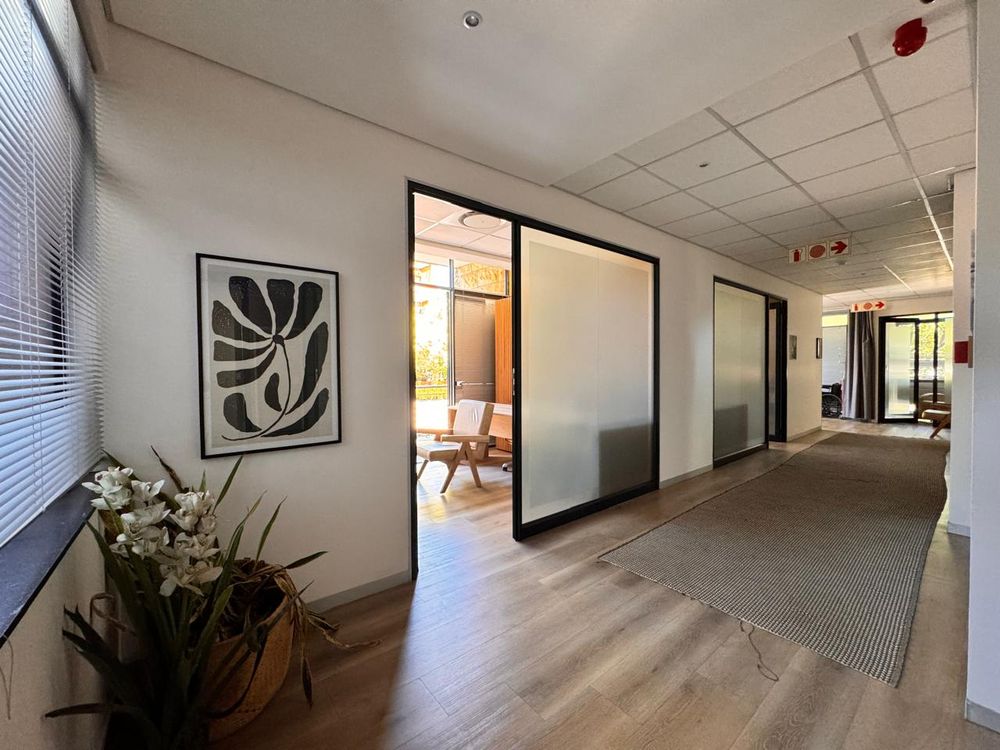Nestled within the serene, landscaped surroundings of 150 Linden Road, this versatile 585 sqm space currently operates as a refined private medical institution but is easily adaptable for office use. It features a welcoming reception area and spacious waiting lounge, which seamlessly lead to multiple private consultation rooms, all equipped with essential medical installations like wall-mounted oxygen ports. With elegant wooden finishes and modern laminated flooring throughout, this space achieves a perfect blend of functionality and aesthetic appeal—creating a professional environment ideal for staff and clients or patients.