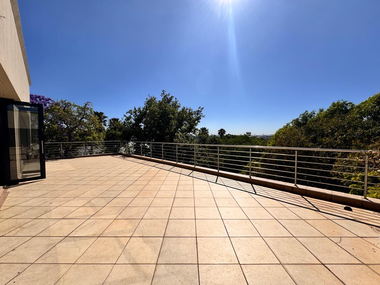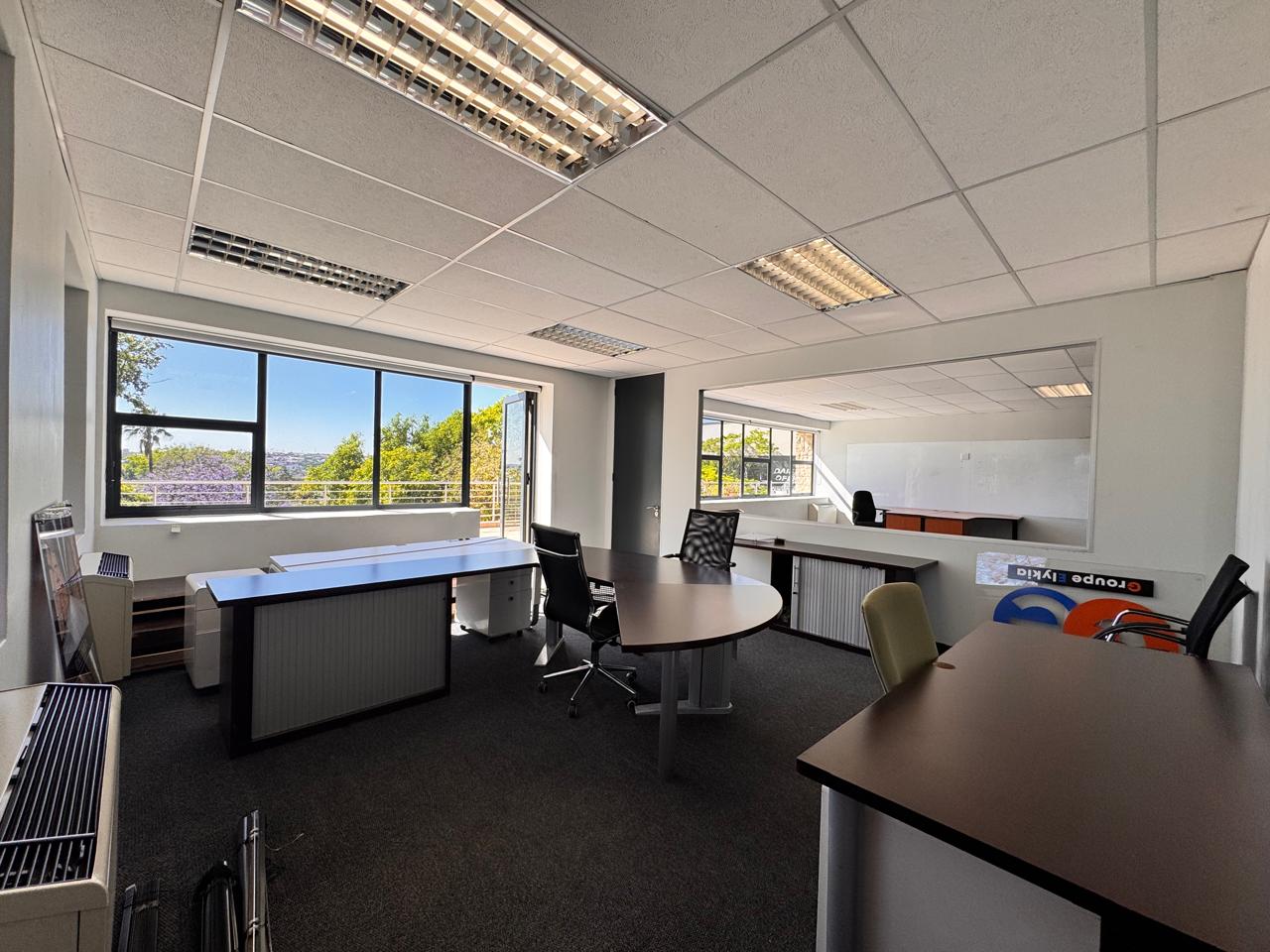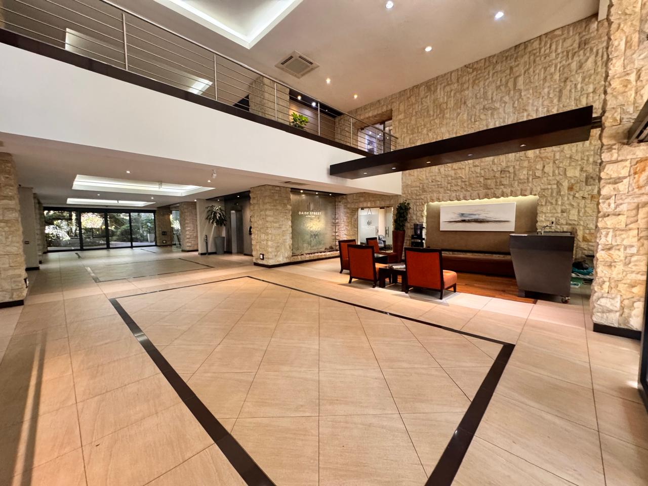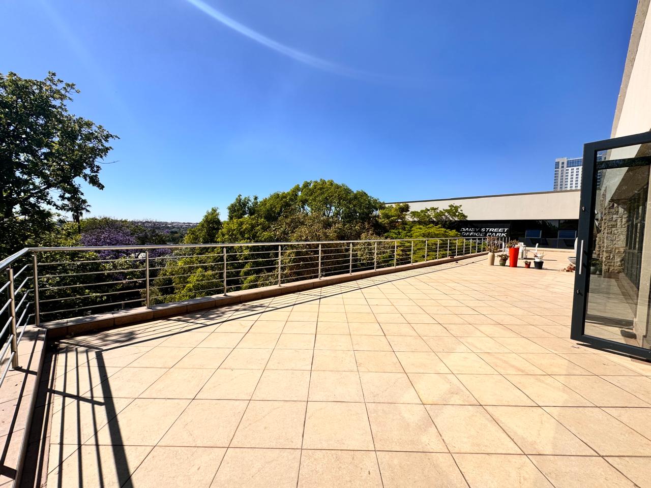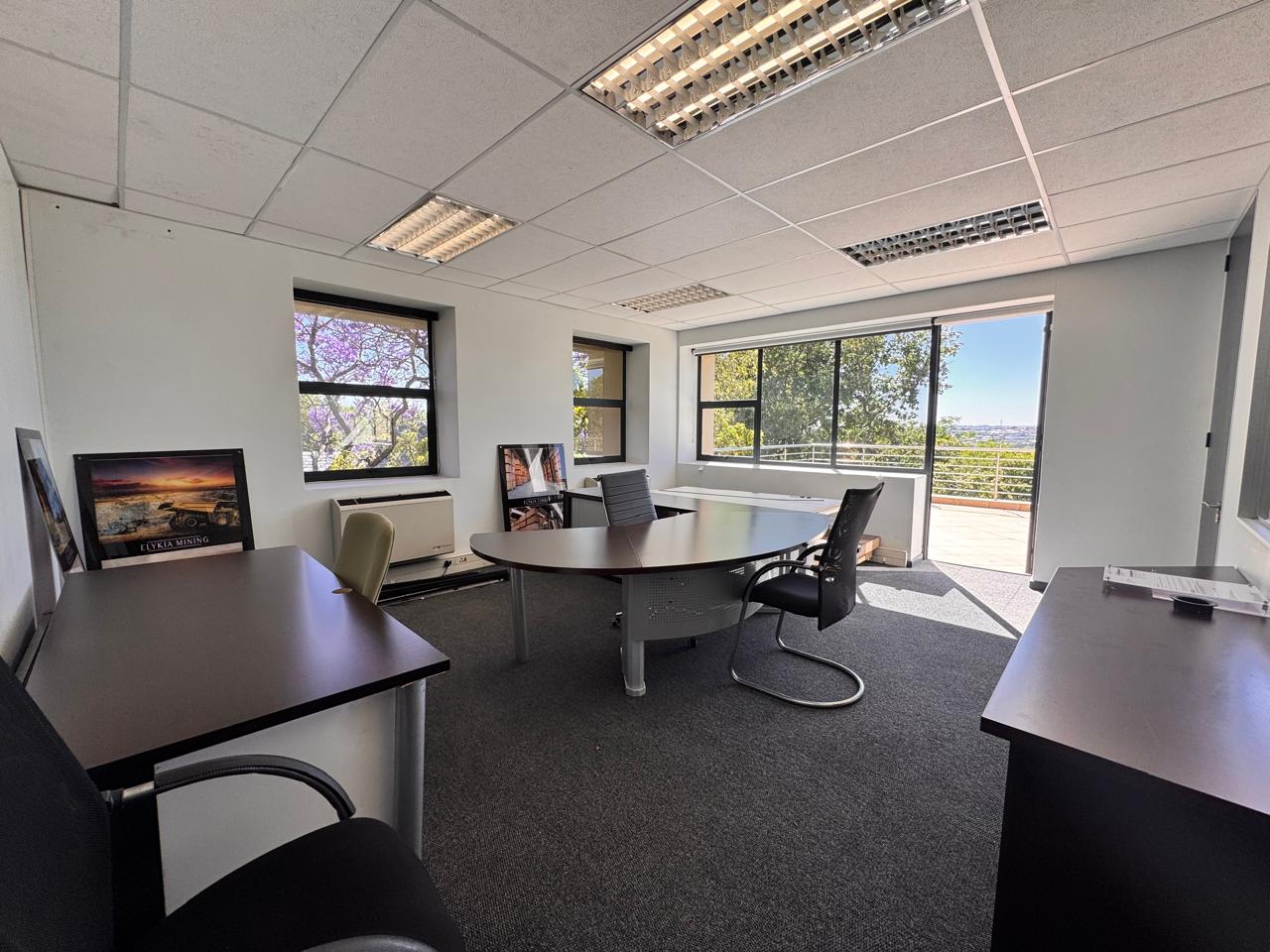 Discover an exceptional 315 sqm office space at 135 Daisy Road, where modern functionality meets elegance in the heart of Sandton. This spacious office is thoughtfully fitted out, offering a mix of open-plan areas for collaborative work, private offices for focused tasks, and a well-appointed boardroom for strategic meetings. An inviting reception area greets clients and visitors with professionalism, and a comfortable waiting area adds a touch of hospitality. Step into your own expansive balcony with sweeping views over Sandton—perfect for a breath of fresh air or an inspiring outdoor meeting space.