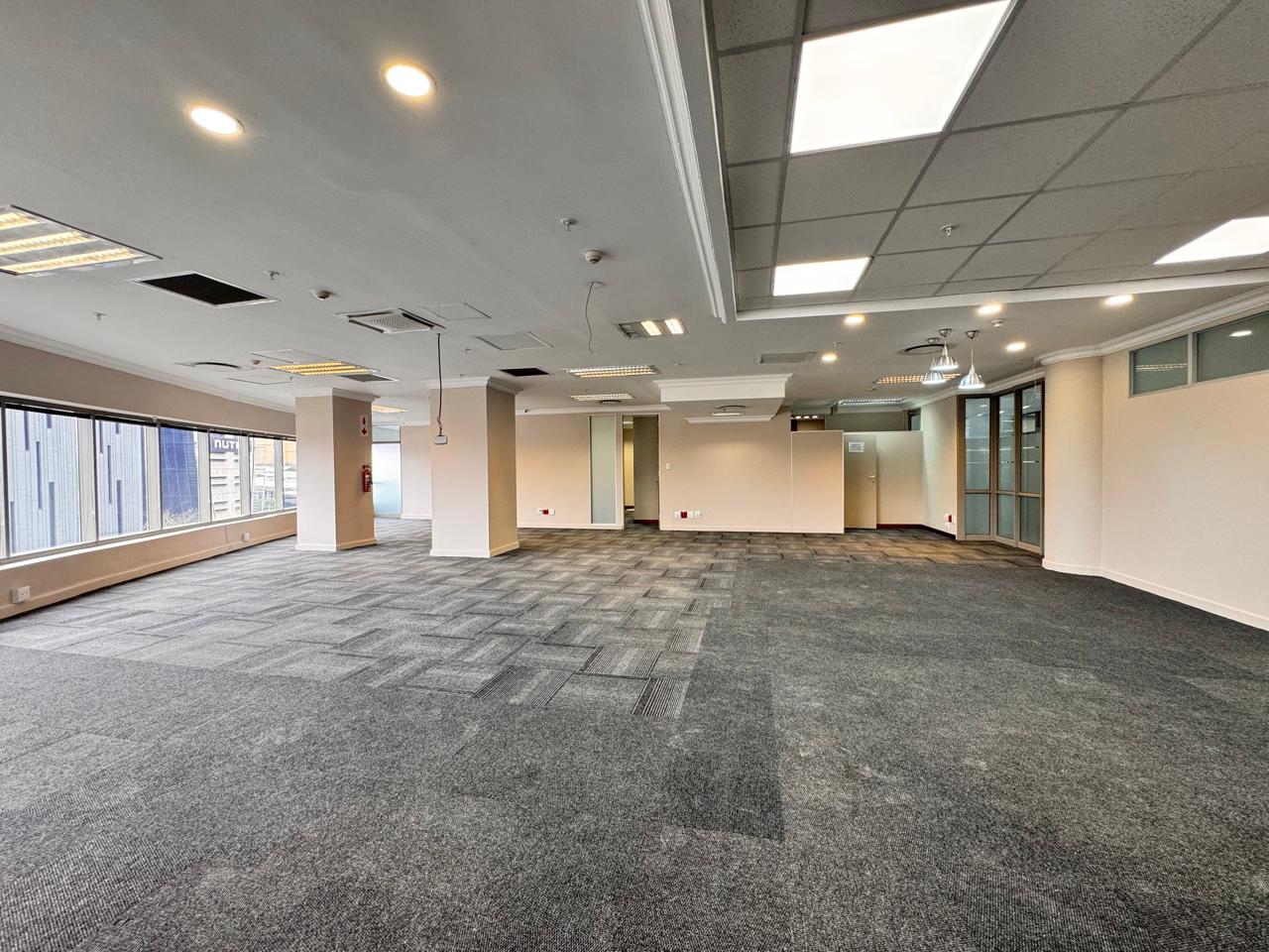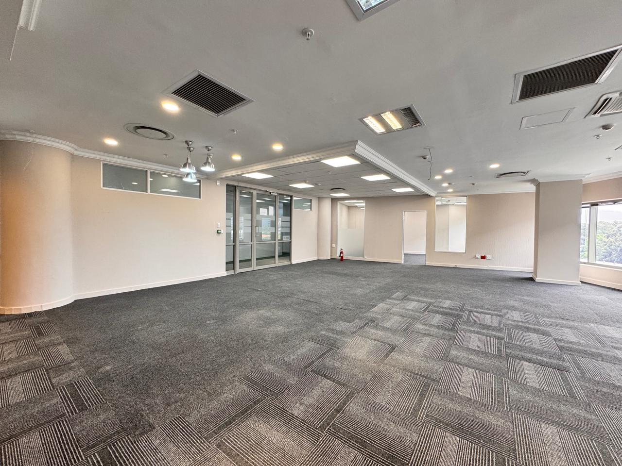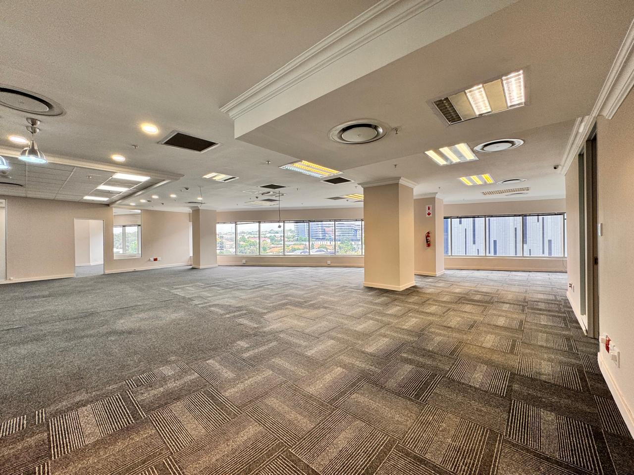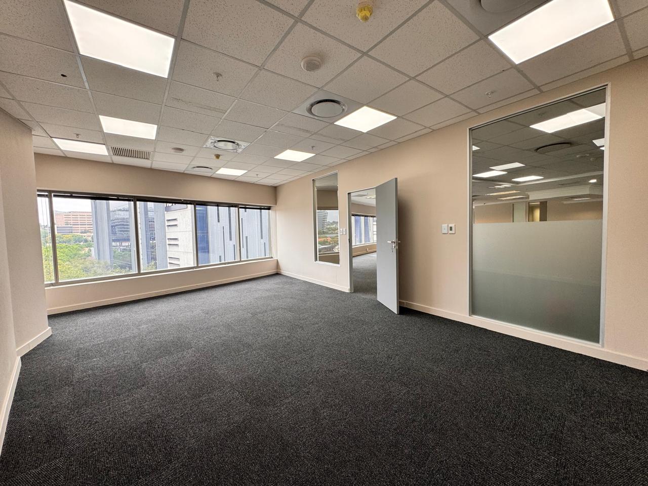 This beautifully fitted-out office space at 114 West Street offers 251 sqm of modern, professional workspace in the heart of Sandton. Upon entry, you’re welcomed into a spacious reception and waiting area, ideal for greeting clients and guests. The office features a variety of flexible workspaces, including several enclosed offices, a large boardroom for meetings, and expansive open areas that can be tailored to your business needs. The office also boasts a private balcony, offering a tranquil escape with views of the surrounding area, perfect for breaks or informal meetings. Additionally, the space includes a well-equipped fitted kitchen and private restrooms, adding extra convenience for your team.
