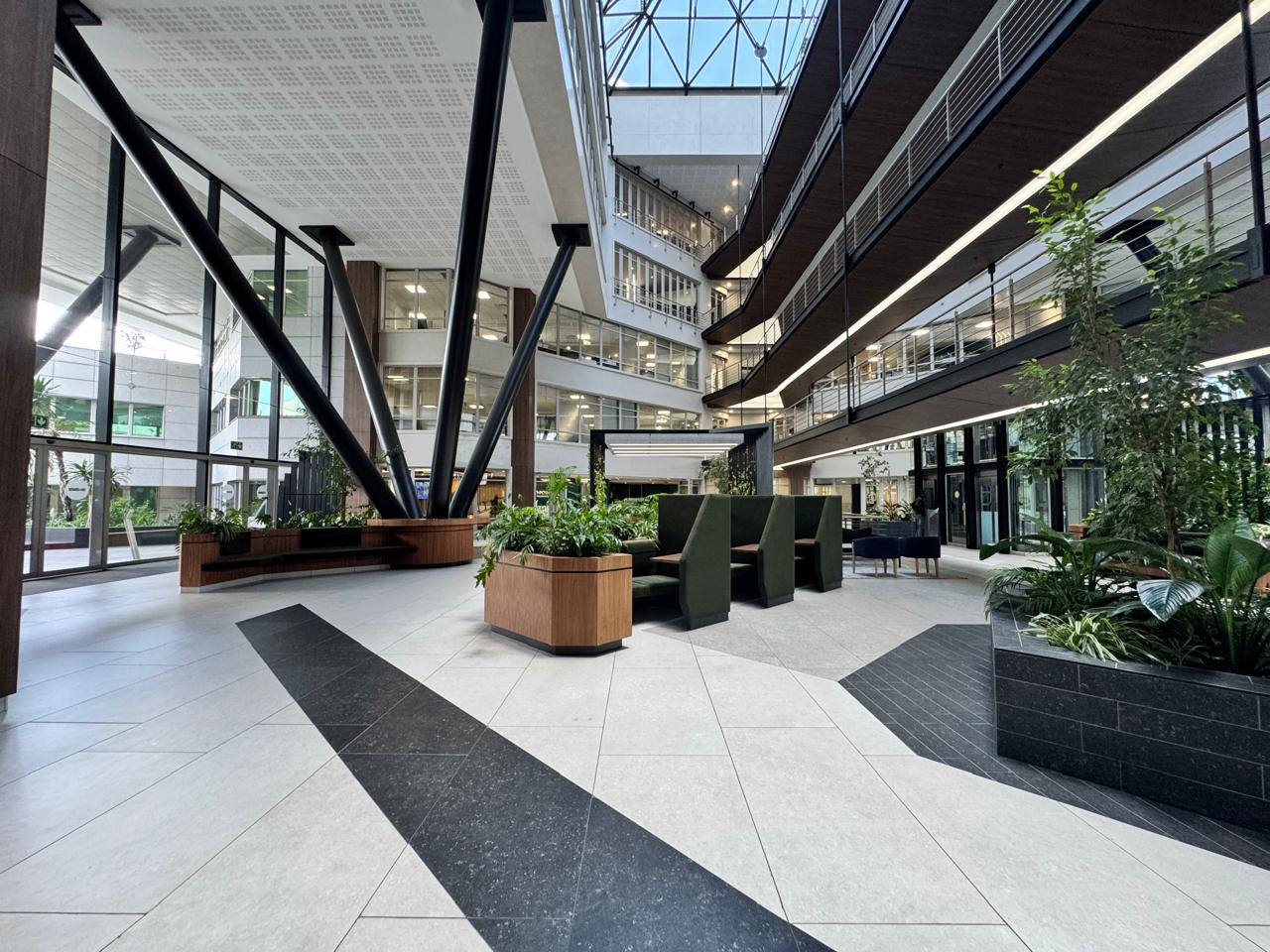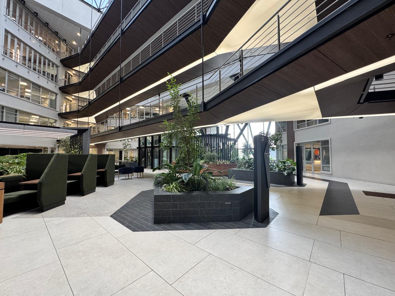 The building itself is a standout in Sandton’s commercial landscape, boasting a sophisticated and recently refurbished design with high-end finishes. Clients and employees are welcomed into an elegant lobby and reception area, complete with full access control for enhanced security. Convenience is at your fingertips with a range of on-site amenities, including a coffee shop, eatery, shoeshine services, a car wash, a mother’s room, and even a nail bar. The building is also equipped with an advanced HVAC system, backup water supply, and free Wi-Fi in common areas, ensuring maximum comfort and efficiency throughout the workday.