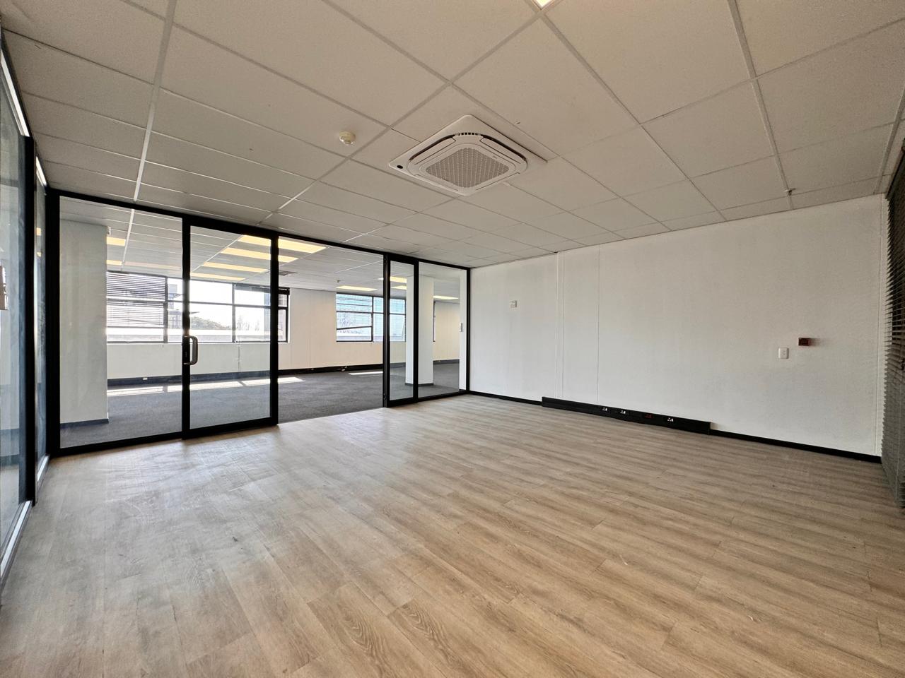 Step into a luxurious 512 sqm office space at 39 Rivonia Road, where sophistication meets functionality. This upmarket, fitted-out office greets you with a professional reception and waiting area, setting the tone for a polished business environment. The layout includes multiple enclosed offices for privacy and focus, while a spacious balcony offers stunning views of Sandton and the surrounding office park. A fitted kitchen adds convenience, and a dedicated server room ensures your IT infrastructure is well-supported. The expansive open area, along with a boardroom and training rooms, provides ample space for collaboration and strategic meetings.