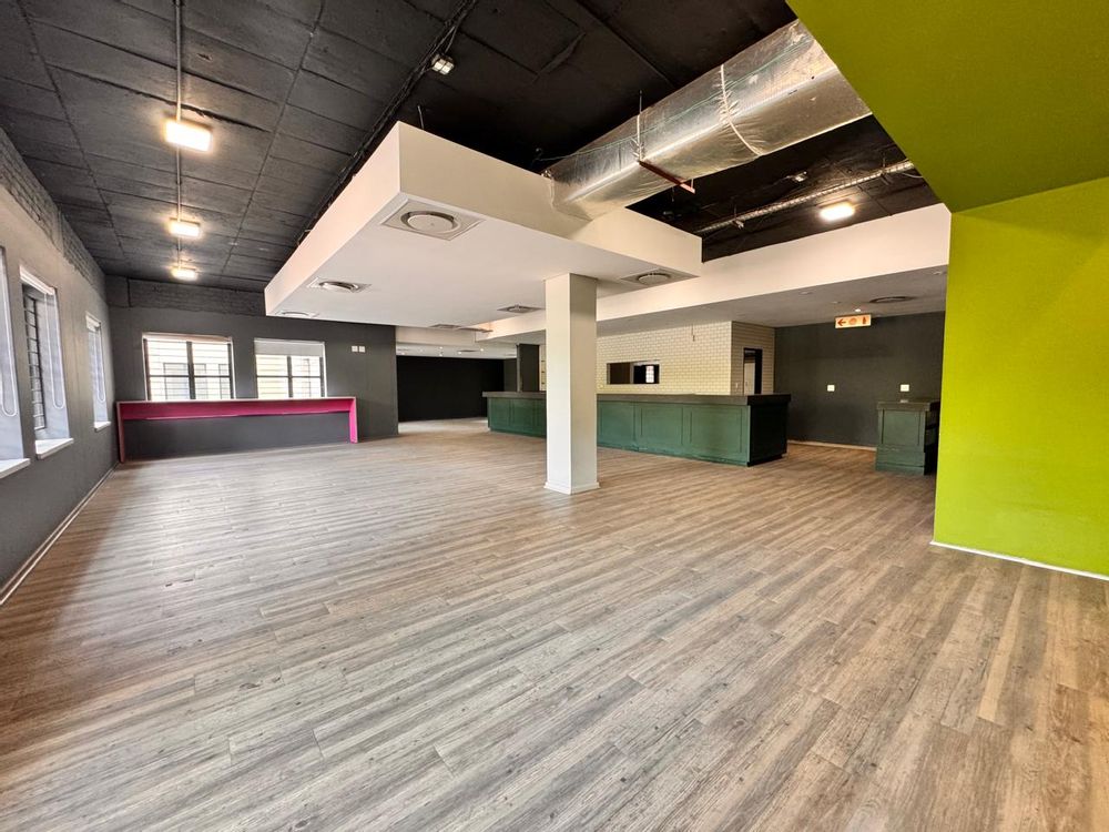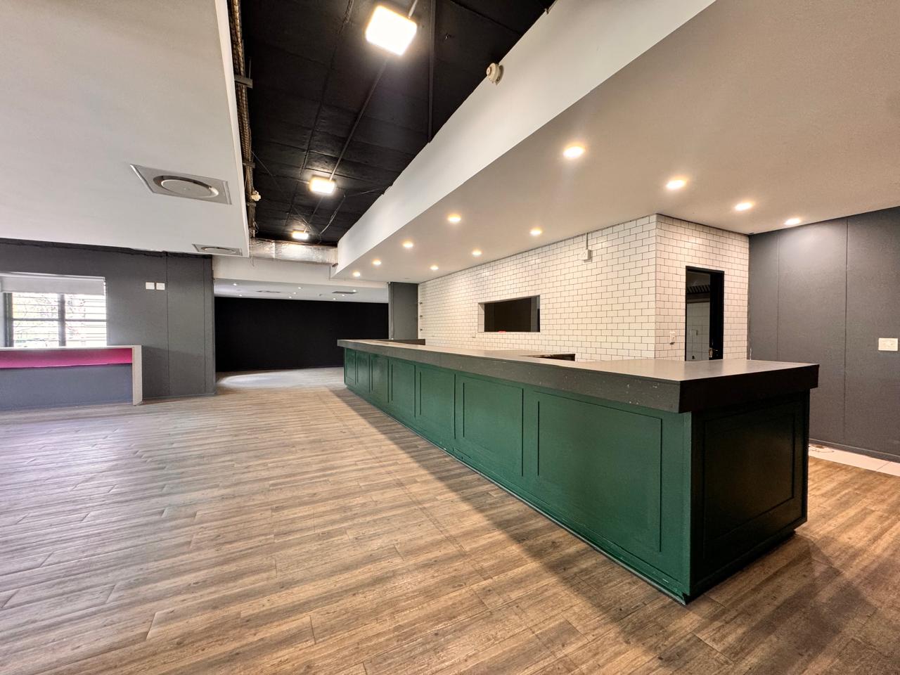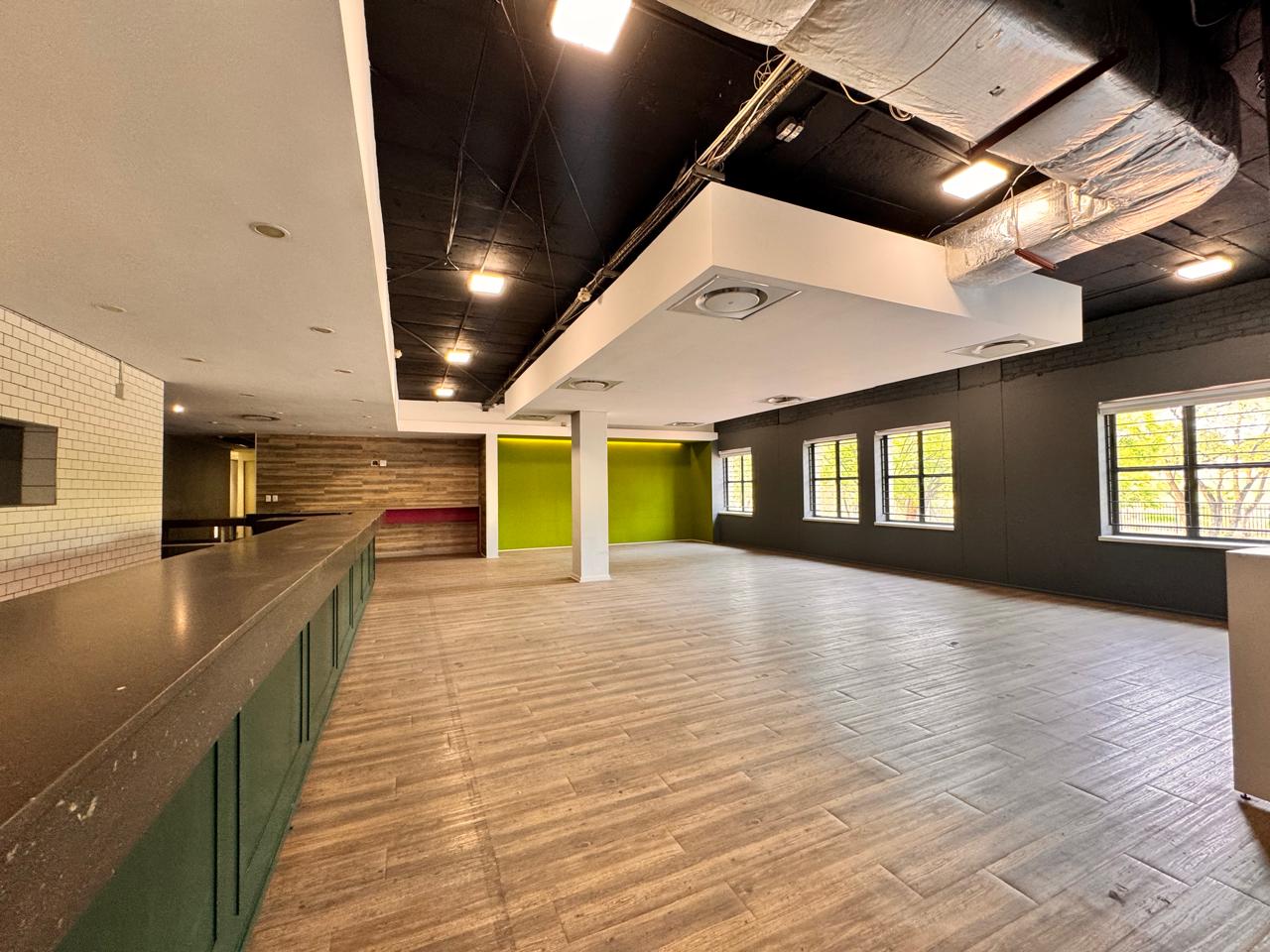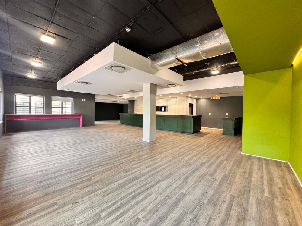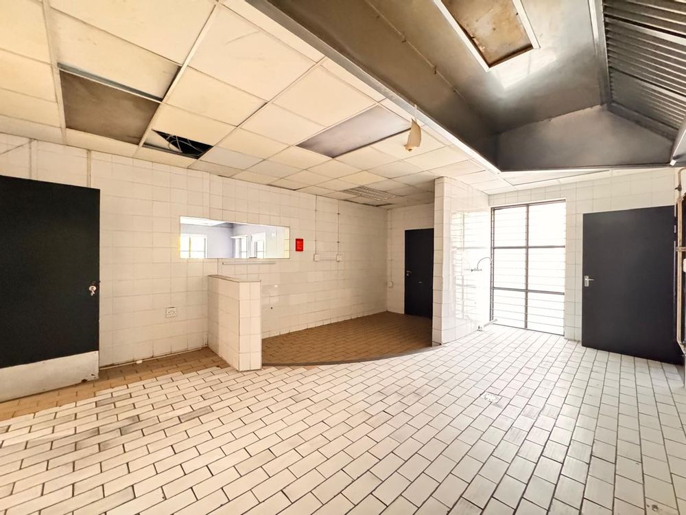 Measuring 407sqm, this versatile space at Strathavon 11, 152 Katherine Street, Sandton is ideal for a canteen or foodservice operation. The layout includes an expansive open area, cooking area, washing station, cool rooms, storage, enclosed offices, private restrooms, and an outside seating area. A large tenant installation allowance is available to assist with fit-out and customization.