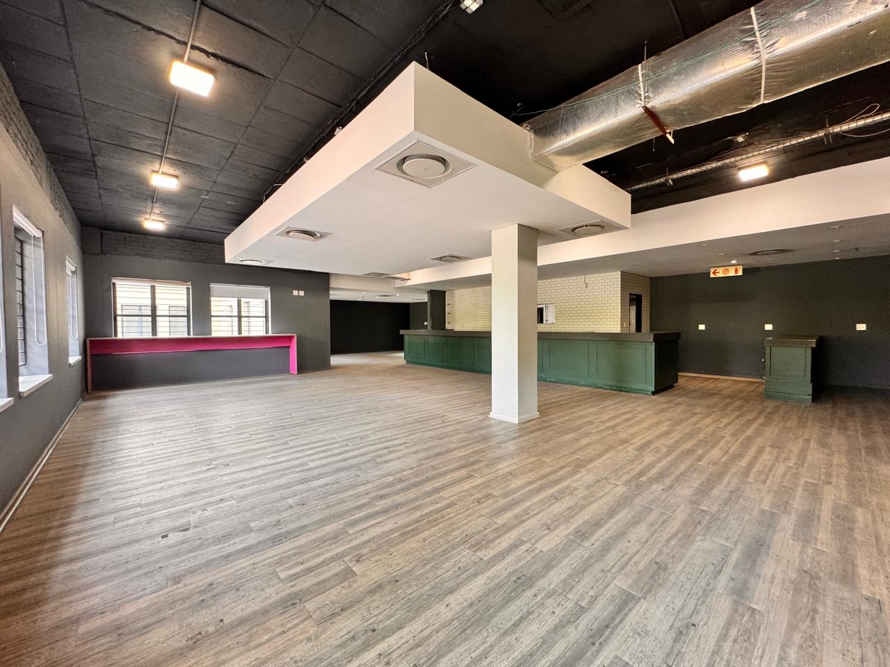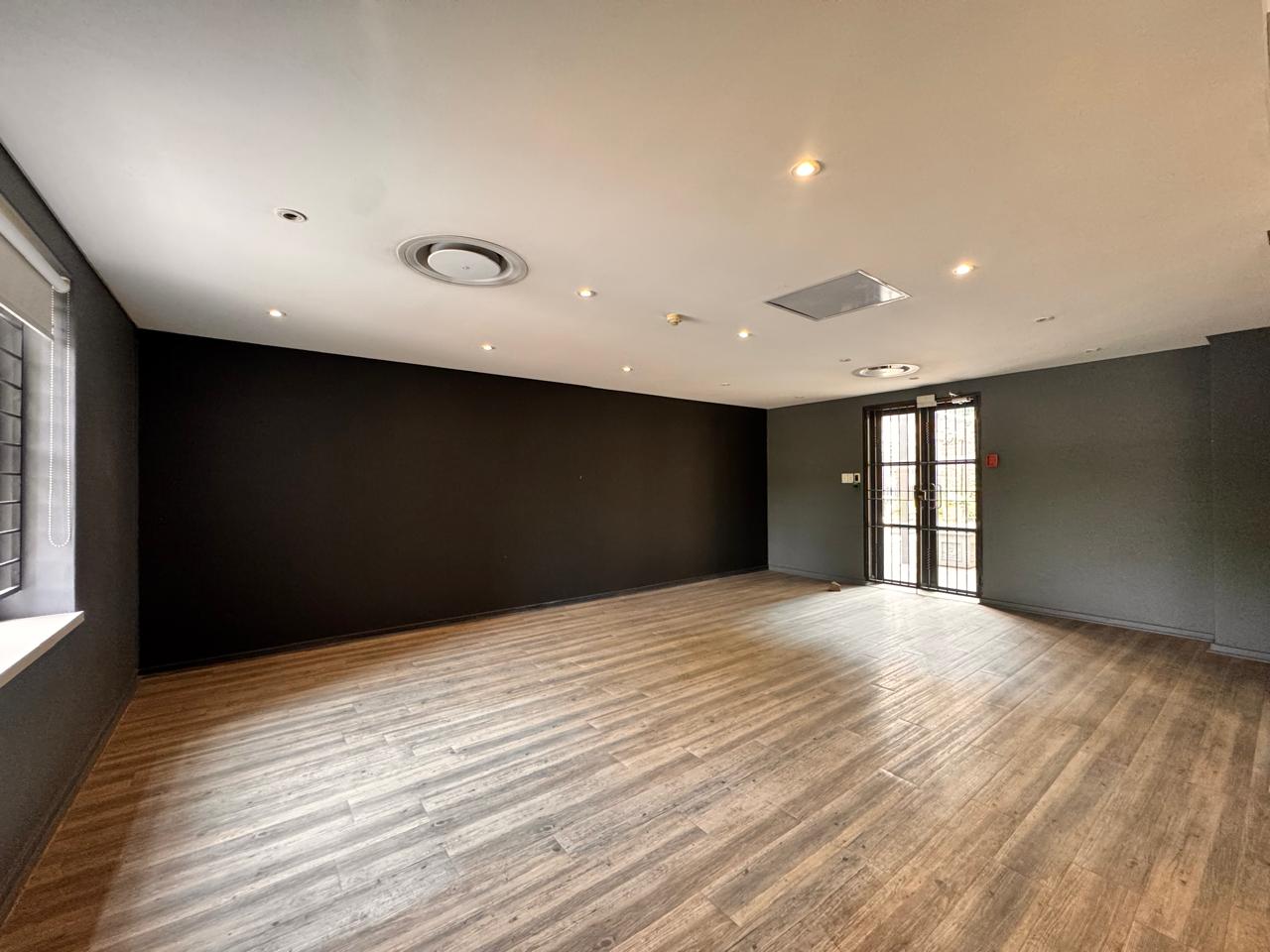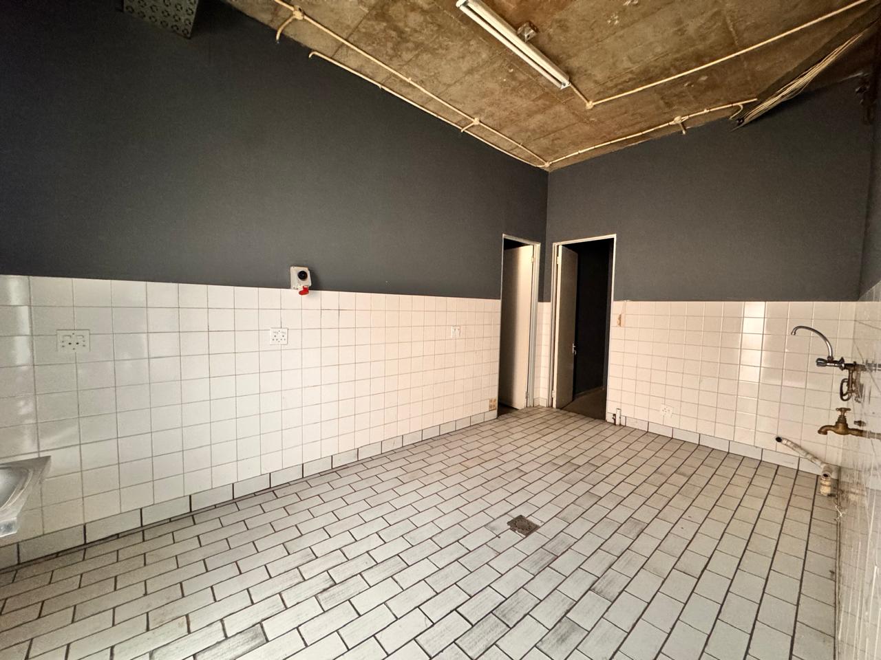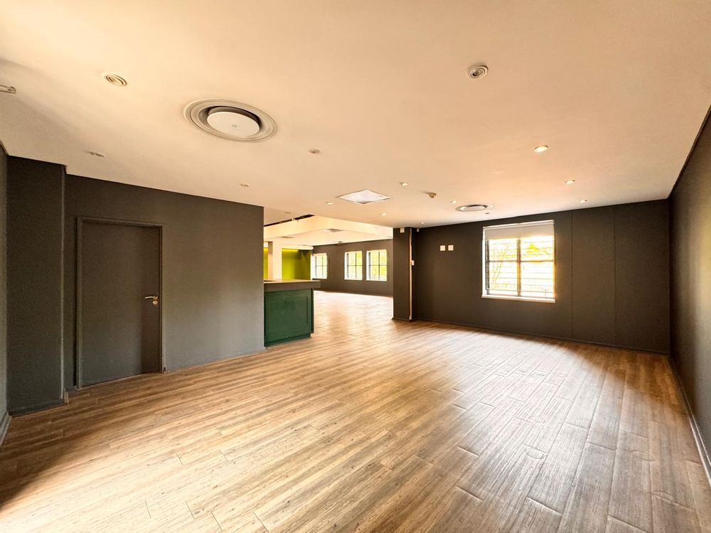 Measuring 407sqm, this versatile space at Strathavon 11, 152 Katherine Street, Sandton is ideal for a canteen or foodservice operation. The layout includes an expansive open area, cooking area, washing station, cool rooms, storage, enclosed offices, private restrooms, and an outside seating area. A large tenant installation allowance is available to assist with fit-out and customization.