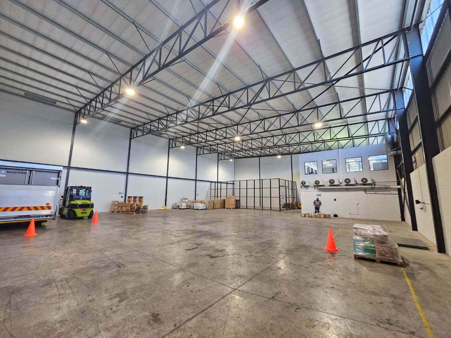 The warehouse offers excellent functionality with approximately 7m clear height to the underside of the eaves and a roller shutter door for easy loading and unloading. The unit is equipped with three-phase power and a 63-amp supply. Good exposure to the R300 highway provides excellent visibility and accessibility for clients and suppliers.
