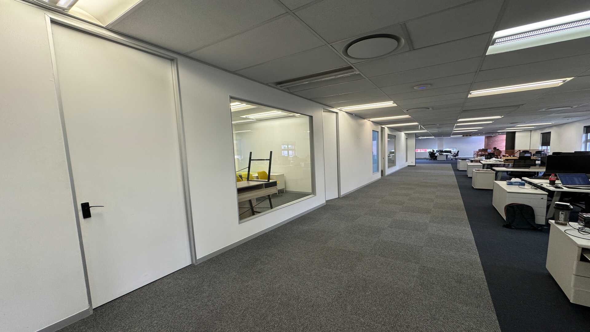 The office features neat, functional interiors with a flexible layout, allowing for open-plan work areas as well as private offices or meeting rooms. Large windows provide excellent natural light, creating a productive and welcoming workspace.