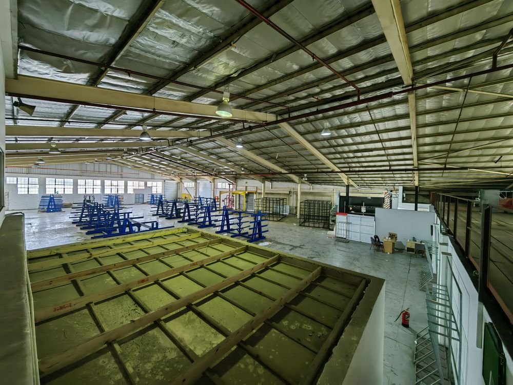 The current layout has a reception and showroom area, the factory floor, offices, kitchen and ablutions downstairs with an extensive mezzanine and addition office space upstairs.