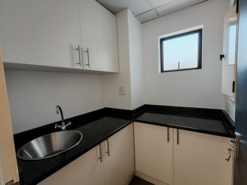 This office is ready for immediate occupation and features a flexible design with removable dry walling, allowing you to easily adapt the space to your business requirements. The layout includes a welcoming reception area, three private offices, a boardroom, a small open-plan area, and a compact kitchen for added convenience. Parking is available at competitive rates — R800 for open bays and R900 for covered bays. Please note all prices exclude VAT, utilities, and parking fees. Don’t miss out on this opportunity to position your business in one of the area’s most desirable complexes. For more information or to arrange a viewing, please contact Keri today.