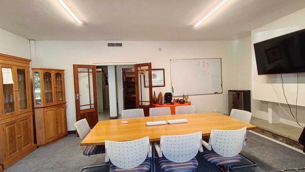 This 988 sqm standalone office in Westville presents an excellent opportunity for businesses seeking a spacious and well-structured corporate environment. The fully air-conditioned building is filled with natural light and offers a functional layout that includes two large boardrooms, multiple meeting rooms, generous open-plan work areas, a dedicated reception area, a walk-in safe, and a fully fitted kitchen. The configuration allows for both collaborative and private working spaces, making it ideal for a head office or established operation.