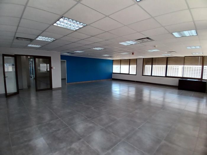 This office is well equipped with kitchenette and ablutions and an open space. Well secured building with boom gates and face recognition.