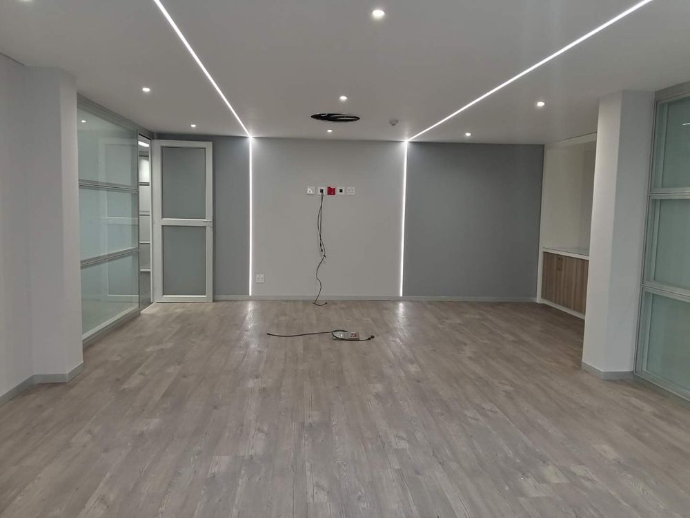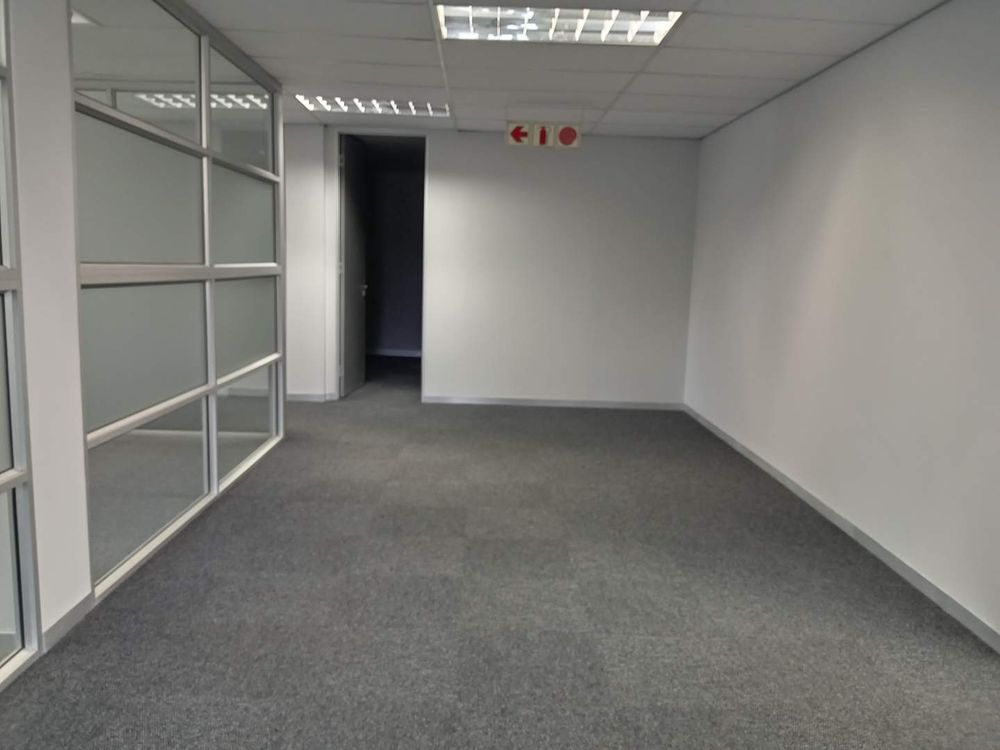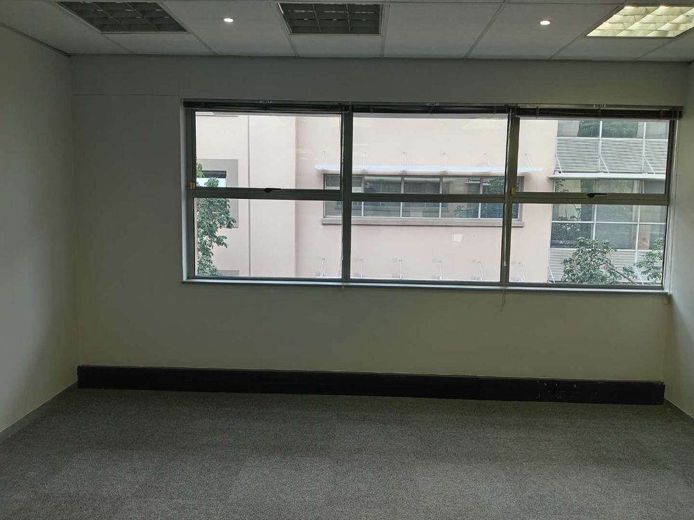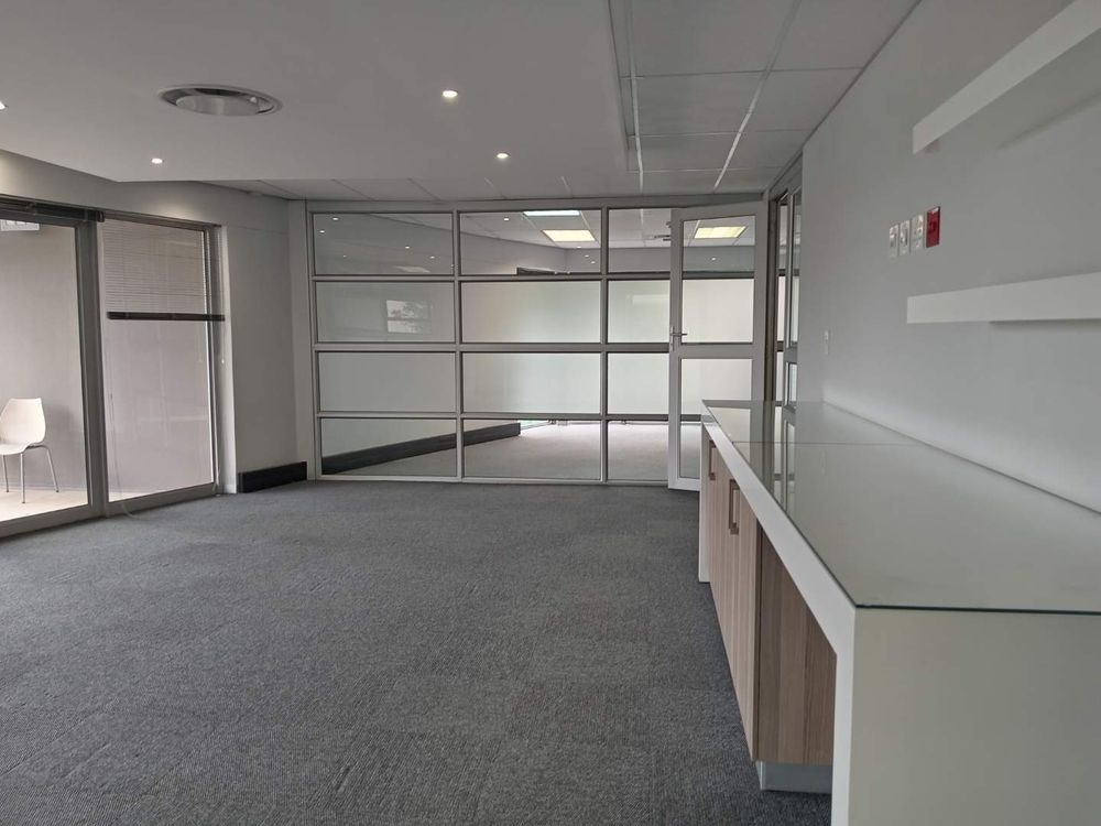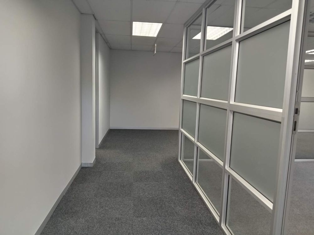 345.49 sqm office space to let, Woodmead, Sandton. Situated on the first floor of Building 29 within the prestigious Woodlands Office Park, this unit features a well-designed layout with multiple partitioned offices, a modern kitchen, and a charming balcony offering panoramic views of the Sandton Skyline and the nearby game park.