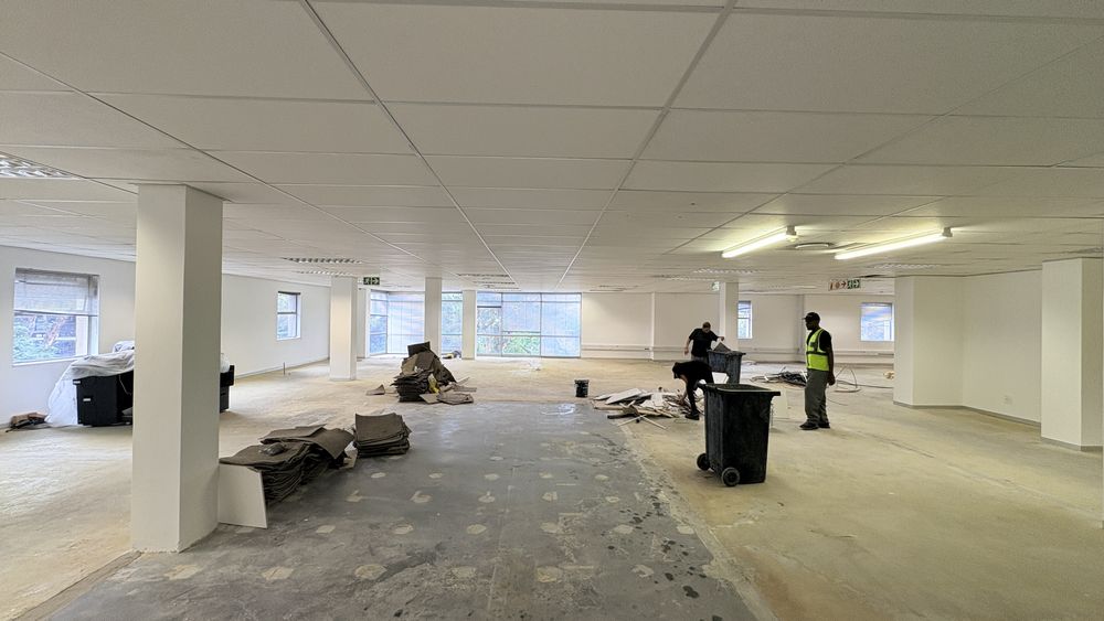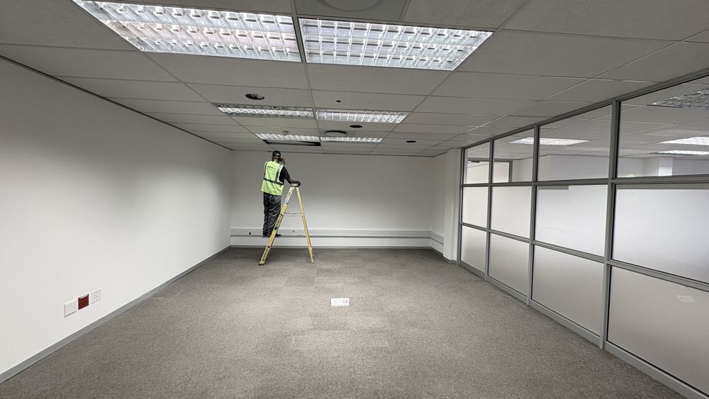 This 2,119m2 office space is available to rent in the prestigious Woodmead business node of Sandton. The premises comprise multiple partitioned offices, open-plan work areas, a boardroom, a fully equipped kitchen, and a private balcony, offering a functional and versatile layout suited to a range of business needs.