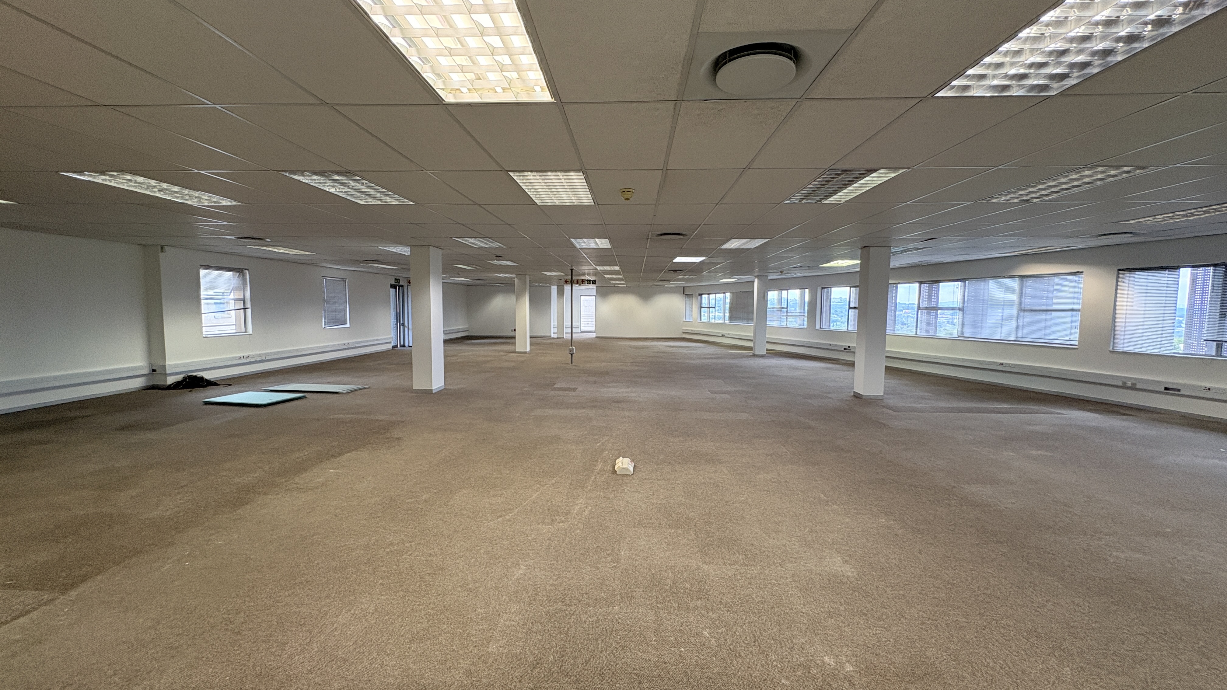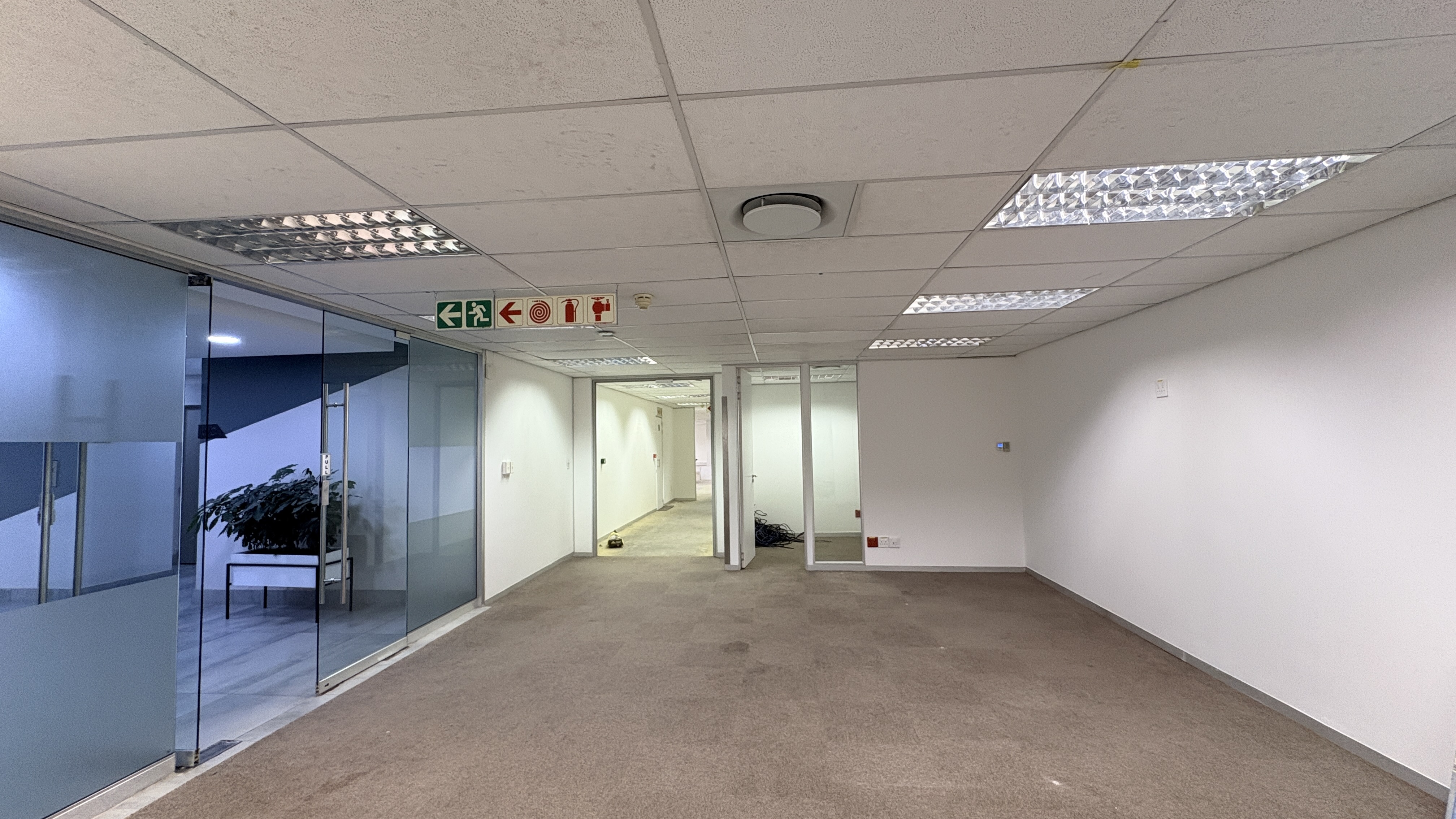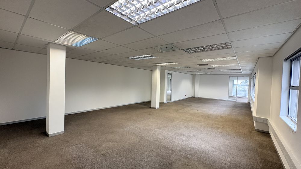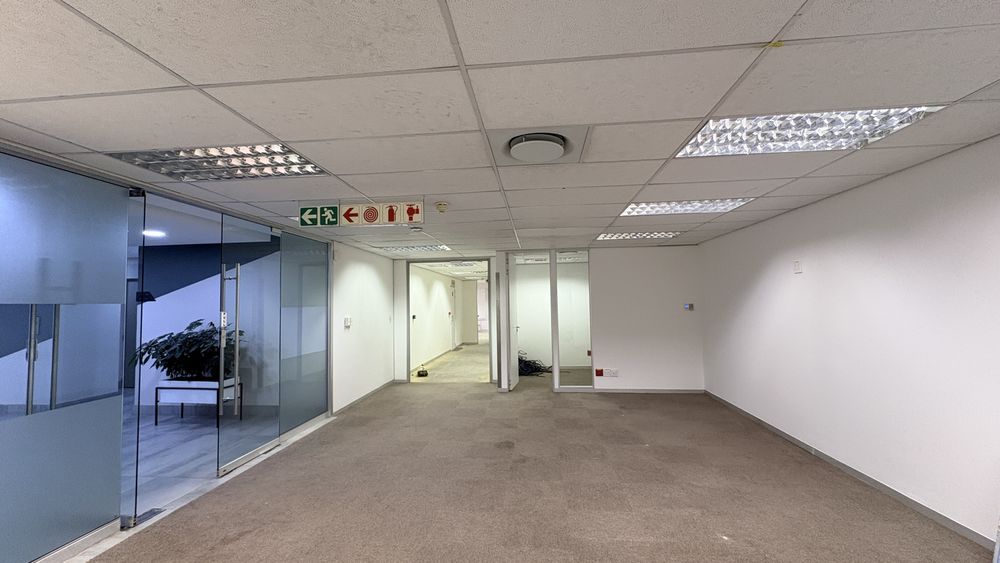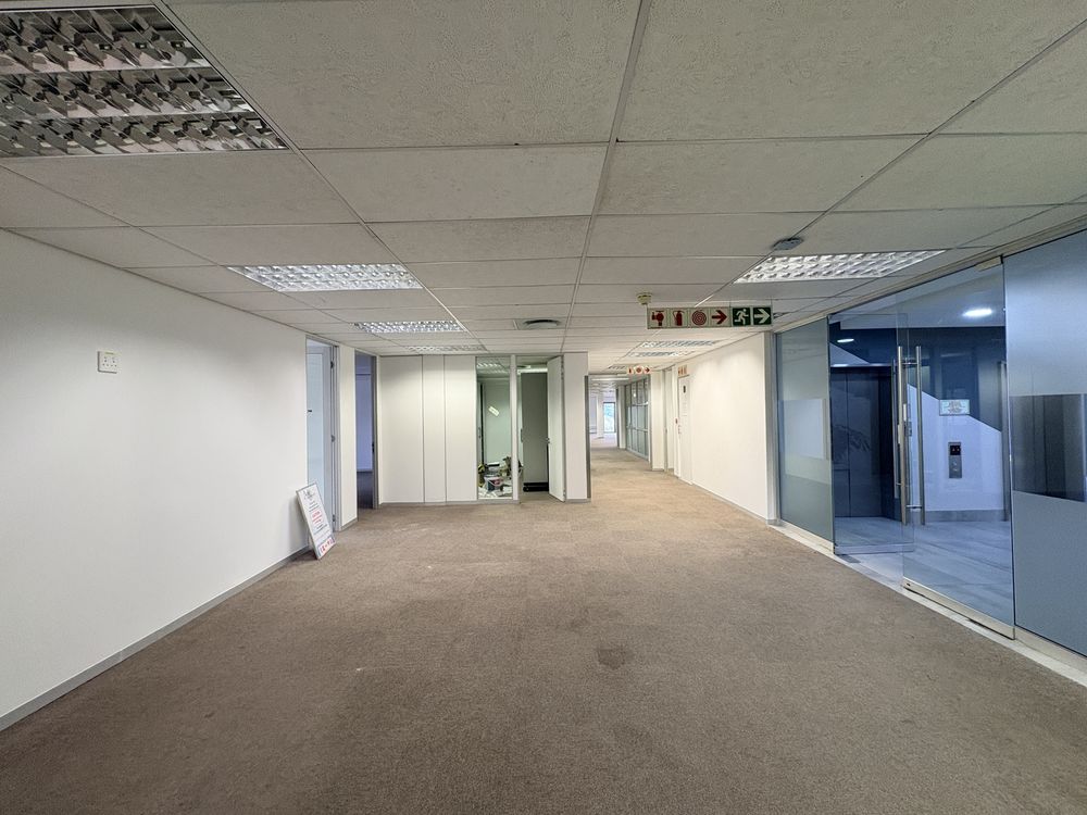 This 2,119m2 office space is available to rent in the prestigious Woodmead business node of Sandton. The premises comprise multiple partitioned offices, open-plan work areas, a boardroom, a fully equipped kitchen, and a private balcony, offering a functional and versatile layout suited to a range of business needs.
