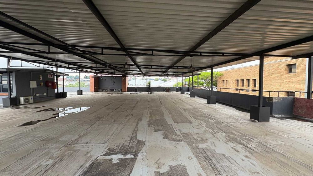 Rooftop area ideal for staff recreation or events with panoramic city views